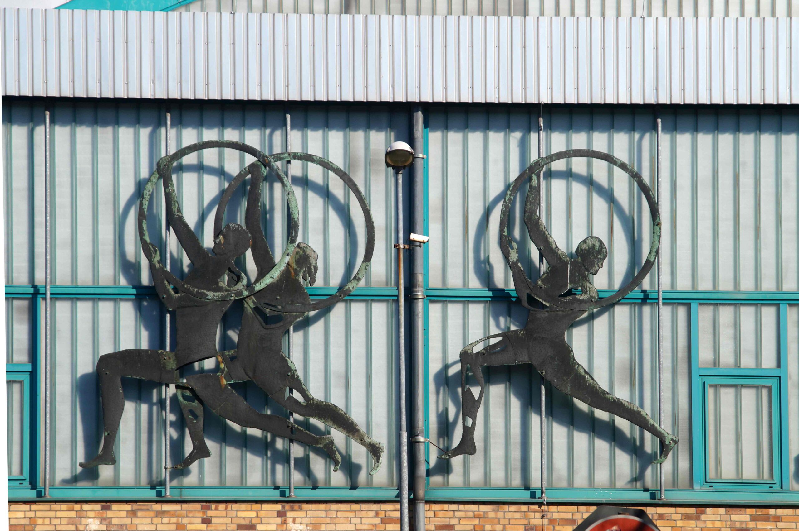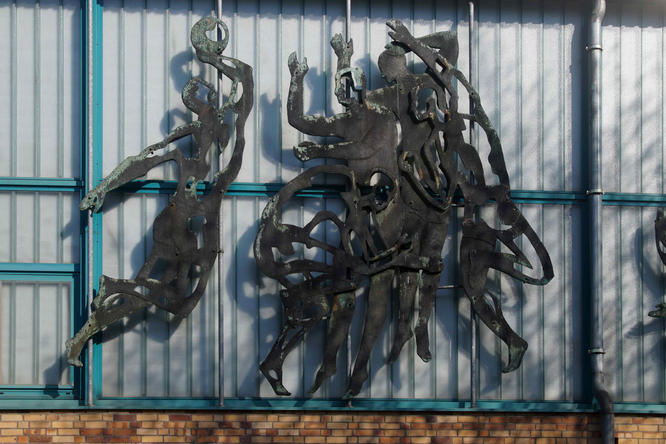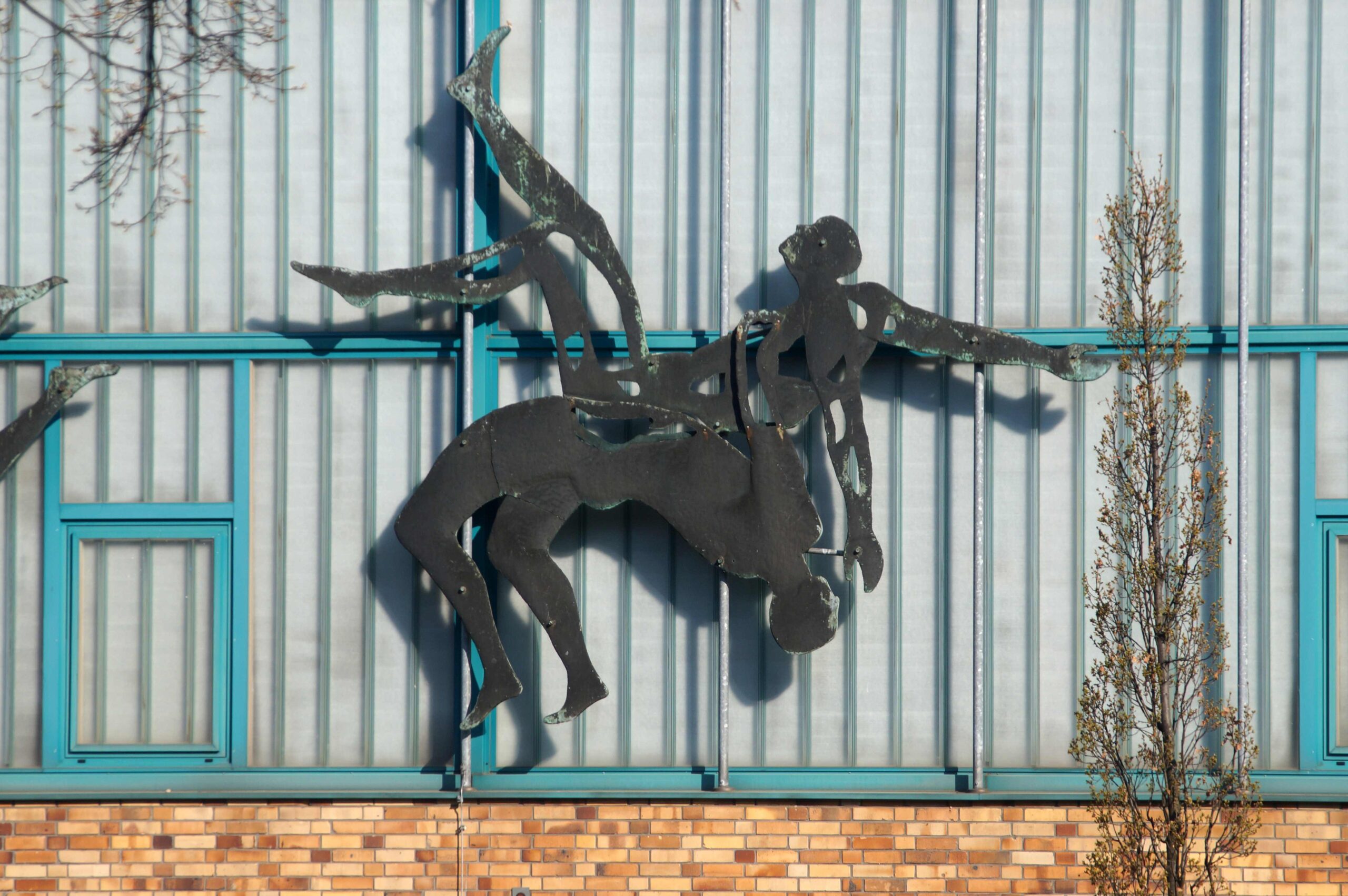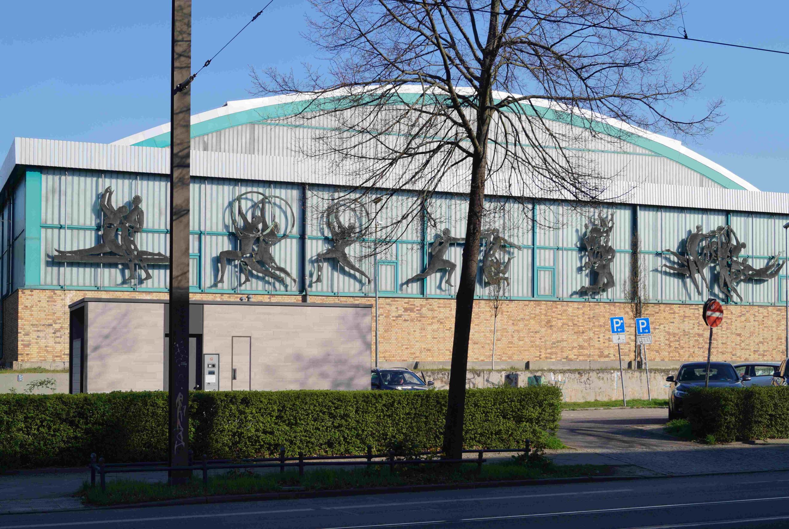 Die südliche Fassade an dem Trainingshallenkomplex des Sportforums Berlin ist über die gesamte Fassadenbreite mit insgesamt vierzehn Darstellungen von einzelnen Sportlern und Sportlergruppen versehen. Im Einzelnen handelt es sich beispielsweise um eine Kunstturnerin auf dem Schwebebalken, Sportler mit Reifen, Radfahrer, zwei Gruppen mit Ballspielern, Läufer und Boxer (Nicola Vösgen).