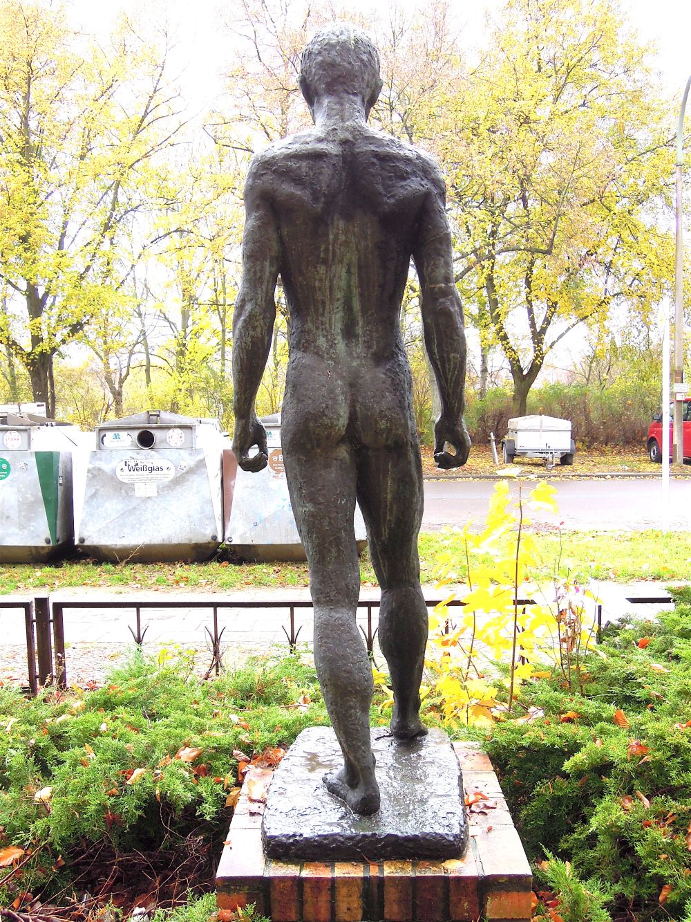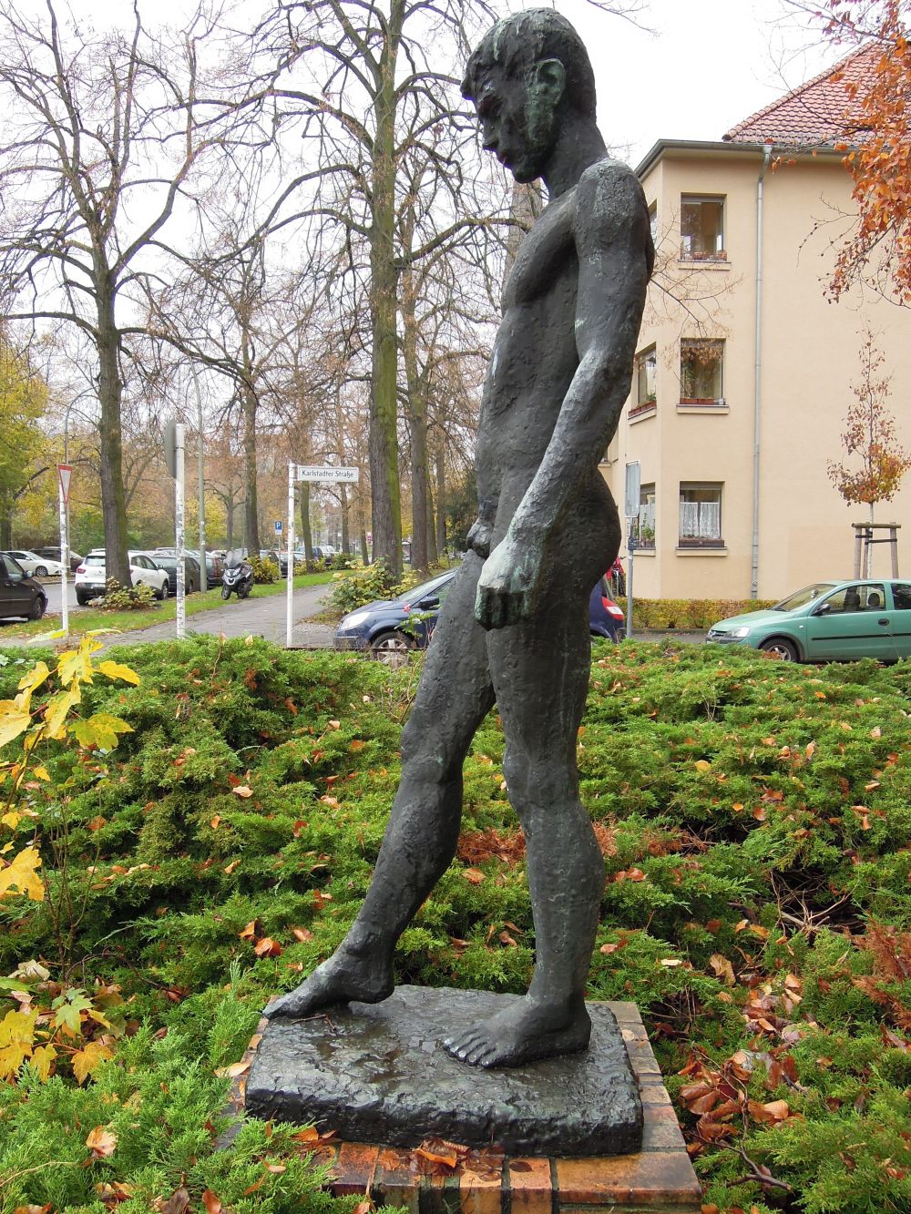 Die von Ritter geschaffene Figur zeigt einen stehenden männlichen Akt in Schrittstellung. Konzentriert und in gespannter Haltung scheint der schlanke, ideal gebildete Jüngling kurz vor dem Absprung oder einer verwandten sportlichen Leistung zu stehen. Das Spielbein ist nach vorne gesetzt, der Fuß berührt nur mit der Spitzen den Boden Der Blick am leicht gesenkten Kopf richtet sich auf das imaginäre Ziel. Es entsteht der Eindruck, als stehe der Betrachter der Plastik im Blickpunkt des Sportlers. Die Figur fußt auf einer schmalen, aber starken Plinthe und ist auf einem Klinkersockel aufgestellt (Jürgen Tomisch, Jörg Kuhn).