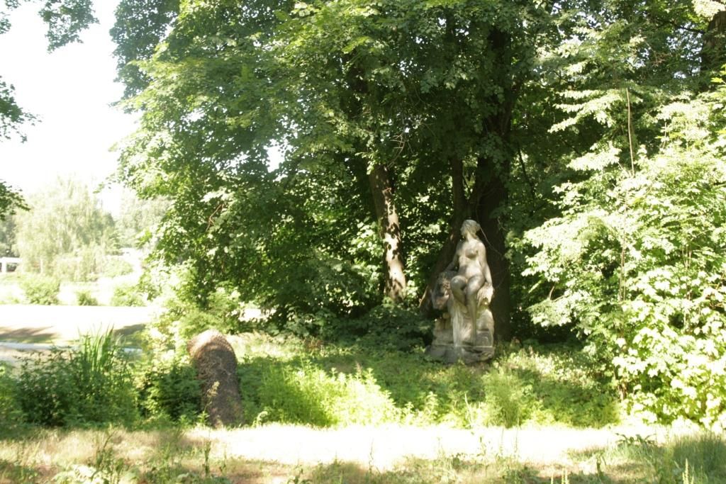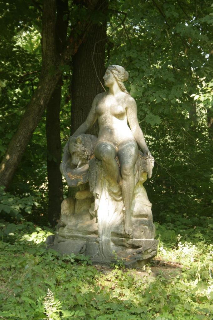 "(...) stoßen wir bald unter hohen Bäumen auf einer Halbinsel, absichtlich etwas vom Hauptbesucherverkehr abseits gestellt, eine auf Netzen sitzende Frauengestalt, einen Kranz im Haar, die aus einer großen, flachen Muschelschale einen Bären tränkt, der im Schilff hockt. Ein Pfahl mit Anlegering vervollständigt das Ensemble um diese schöne Frau, aus leuchtend weißem italienischen Marmor gemeißelt, deren Blick sinnend in die ferne schweift. Ihr ursprünglicher Standplatz befand sich im 1. Stock in der großen Halle vor dem Magistratssitzungssaal des Rathauses der Hauptstadt Berlin, das damals von vielerlei Kunstwerken geschmückt war. Beim Wiederaufbau des stark beschädigten Gebäudes nach 1950 wurde sie von ihrem alten Standplatz entfernt, vom VEB Stuck und Naturstein restauriert und dem Tierpark geschenkt, der sie 1955 an einer kleinen schmalen Wasserschlenke des kleineren Mittelteiches aufstellte. Diese Frauenfigur symbolisiert die Spree, daher auch 'Sprea' genannt, die den Berliner Bären (also Berlin) mit Wasser versorgt. Sie wurde in einer Zeit, wo man sich gern allegorisch ausdrückte, von Jeremias Christensen (Berlin) Ende der neunziger Jahre geschaffen. Wir mußten sie noch einmal 1966 von Walter Lerche überholen lassen, weil Rüpel ihr wieder Zehen und Finger abgeschlagen hatten" (Heinrich Dathe, 1980, S. 54-55). Die "Sprea" gehört zur künstlerisch bedeutenden skulpturalen Ausstattung des so genannten Roten Rathauses, wo sie an zentraler Stelle in einer - unverändert erhaltenen - Rundbogennische stand und auch die Zerstörungen des Gebäudes im Zweiten Weltkrieg, fast wie ein Wunder, ziemlich unbeschädigt überstand. Beim Wiederaufbau des Rathauses nach 1945 wurde die Figurengruppe exmittiert und 1955 erfolgte die Aufstellung im Tierpark Friedrichsfelde (vgl. auch: Konstantin Wächter: Berlin, Tierpark Friedrichsfelde. Sozialistischer Planzoo des Kollektivs Graffunder - Analyse und Inventarisation, Masterarbeit am institut für Architektur, Fachgebiet Historische Bauforschung, Technische Universität Berlin, Berlin 2012, S. 108-109). Seit ihrer Aufstellung im Tierpark hat die kostbare Skulptur erheblich Schaden genommen. Ansätze und Appelle zu ihrer Rettung sind bisher unerhört und weitgehend folgenlos am demonstrativen Desinteresse des Eigentümers gescheitert (Jörg Kuhn).