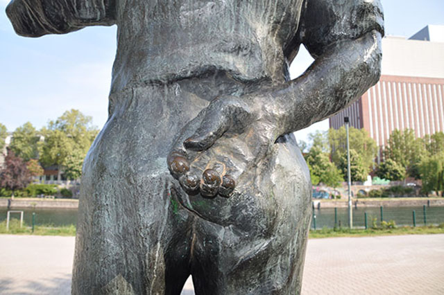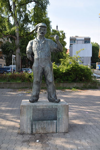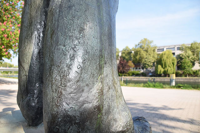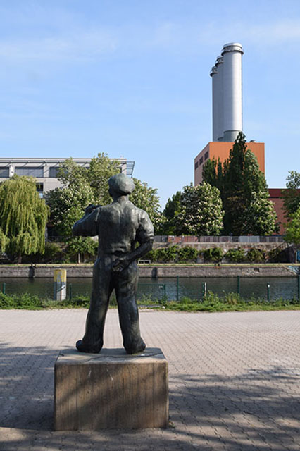 Die Skulptur der Bildhauerin Gertrud Bergmann mit Gedenktafel für Alfred Braun wurde 1982 am Spreeufer gegenüber des Kraftwerks Charlottenburg aufgestellt. Alfred Braun war seit 1924 Rundfunksprecher. Nach dem Krieg arbeitete er als Hörspiel- und Filmregisseur und wurde 1954 Intendant des neu gegründeten Senders Freies Berlin (vgl. https://www.berlin.de/ba-charlottenburg-wilmersdorf/ueber-den-bezirk/geschichte/gedenktafeln/artikel.125487.php).