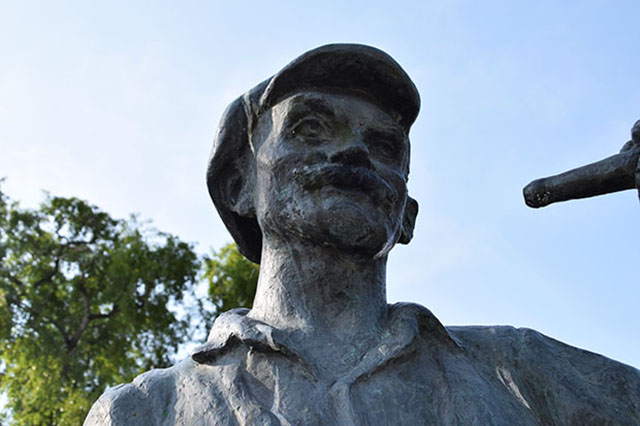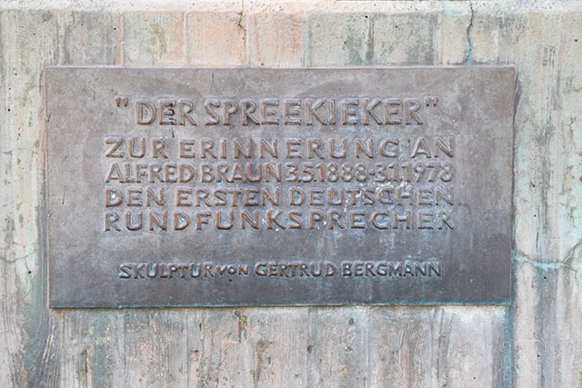 »"DER SPREEKIEKER"/ ZUR ERINNERUNG AN/ ALFRED BRAUN 3.5.1888 - 3.1.1978/ DEN ERSTEN DEUTSCHEN RUNDFUNKSPRECHER/ SKULPTUR von GERTRUD BERGMANN«