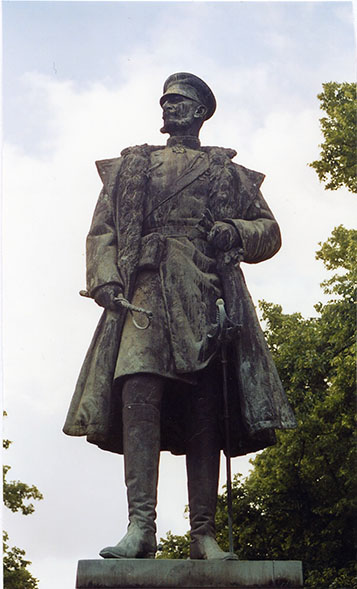 Am 14.10.1901 in Anwesentheit von Kaiser Wilhelm II. eingeweiht. Die Denkmalumgebung wurde bei dieser Gelegenheit (Mosaikpflaster mit Eisernem Kreuz) neu gestaltet. 1984 erfolgt die Wiederherstellung dieser Fassung von 1901. Die Anlage des Mittelstreifens der Schlossstrasse, auf dem das Standbild postiert ist, geht auf die Zeit König Friedrich Wilhelms IV. von Preußen zurück (1840/1842). Sie wurde 1885/1886, nach Plänen des Stadtgartendirektors Hermann Mächtig umgestaltet. 1860 wurden auf diesem Streifen die Bronzedenkmäler zweier Garde-du-Corps-Soldaten zu Pferde von August Kiss aufgestellt, Geschenke des russischen Zaren Nikolaus I. (1796-1855) an seinen preußischen Schwager. Diese Bronzen wurden 1889 mit der Übersiedlung der Garde du Corps nach Potsdam versetzt. Zwischen 1899 und 1920 befand sich hier auch die von Rudolf Pohle geschaffenen Marmorfigur "Leonore" (seit Ende des Zweiten Weltkriegs verschollen), die von Erwin Barth in den Lietzenseepark versetzt worden war, da sie seiner Meinung nach die Sicht auf das Schloss behinderte (Susanne Kähler, Jörg Kuhn).