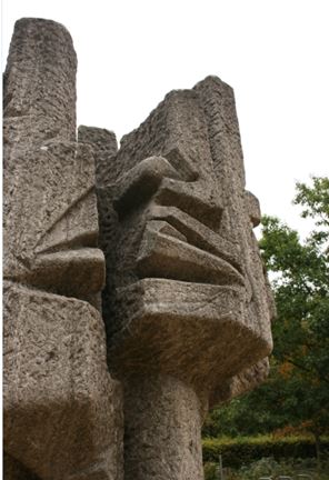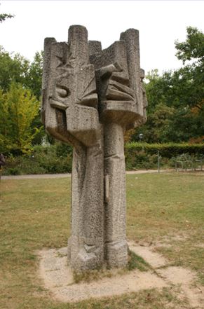 Von Waschbetonplatten umgeben steht am Rande eines Sandkastens die aus Muschelkalkstein geschlagene abstrakte Skulptur „Steinerne Pflanze“. Aus einem sich nach oben etwas verjüngenden, scheinbar aus mehreren Strängen gebündelten Stamm erwächst auf etwa halber Höhe ein Kandelaberartiger Blütenkelch, dessen einzelne Blütenblätter in kantigen Formen nach oben streben und in differenzierten Höhenpunkten enden. Das Aufstrebende wird nur gelegentlich durch eher horizontale Formationen durchbrochen. Manche Formen scheinen sich – zusammen betrachtet – zu Gesichtern zu vereinigen, was der an sich recht starren Figur eine gewisse Lebendigkeit verleiht. Das Werk scheint aus mehreren Steinblöcken zusammengesetzt und nicht aus einem monolithen Stein gehauen zu sein (Susanne Kähler).