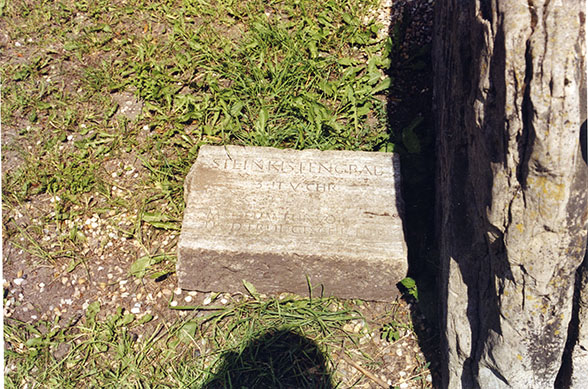 1893 auf Helgoland durch den Chemiker Hermann Otto Wilhelm Olshausen ausgegraben. Inhalt war ein männliches Skelett mit Schmuckbeigaben (nicht mehr erhalten). Um 1894 nach Berlin überführt. In den späten 1950er Jahren aus der Ruine des ehemaligen Kunstgewerbemuseums (heute: Martin-Gropius-Bau) geborgen, jedoch im Fundzusammenhang unerkannt. Übergabe an das Museum für Vor- und Frühgeschichte, das 1958/1960 in den als Museum aufgebauten Theaterbau am Schloss Charlottenburg (Langhans-Bau) einzog. Das Steinkistengrab wurde im Park des Schlosses, etwa am Eingang zum Weg zum Mausoleum, in falscher Anordnung der Fragmente und fehldatiert (3. bis 4. Jahrtausend vor Christus, Jungsteinzeit) ohne Angabe der Herkunft aufgestellt. 2008 gelang im Zusammenhang mit dem Umzug des Museums auf die Berliner Museumsinsel die Identifizierung und die Zuordnung zu den Fundpapieren von 1893/1894. In der Sarkophag-Halle des Neuen Museums konnte das bronzezeitliche Grabmal, nun richtig zusammengesetzt, wieder aufgebaut werden. Für Helgoland (Schleswig-Holstein) wurde 2014 eine Kunststein-Kopie des bedeutenden Steinkistengrabes angefertigt (Jörg Kuhn).
