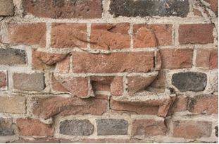 Auf einer aus rustikalen Klinkern gefügten Brunnenarchitektur, deren hinterfangende und gleichzeitig als Substruktionsmauerverkleidung dienenden Mauer mit Ziegelreliefs (Vogel, Fisch, Eichhörnchen, Hase) verziert ist, steht auf längsrechteckiger Plinthe die Bronzegruppe zweier kämpfender („streitender“) Knaben („Putten“) (Susanne Kähler).