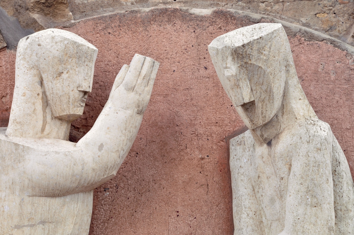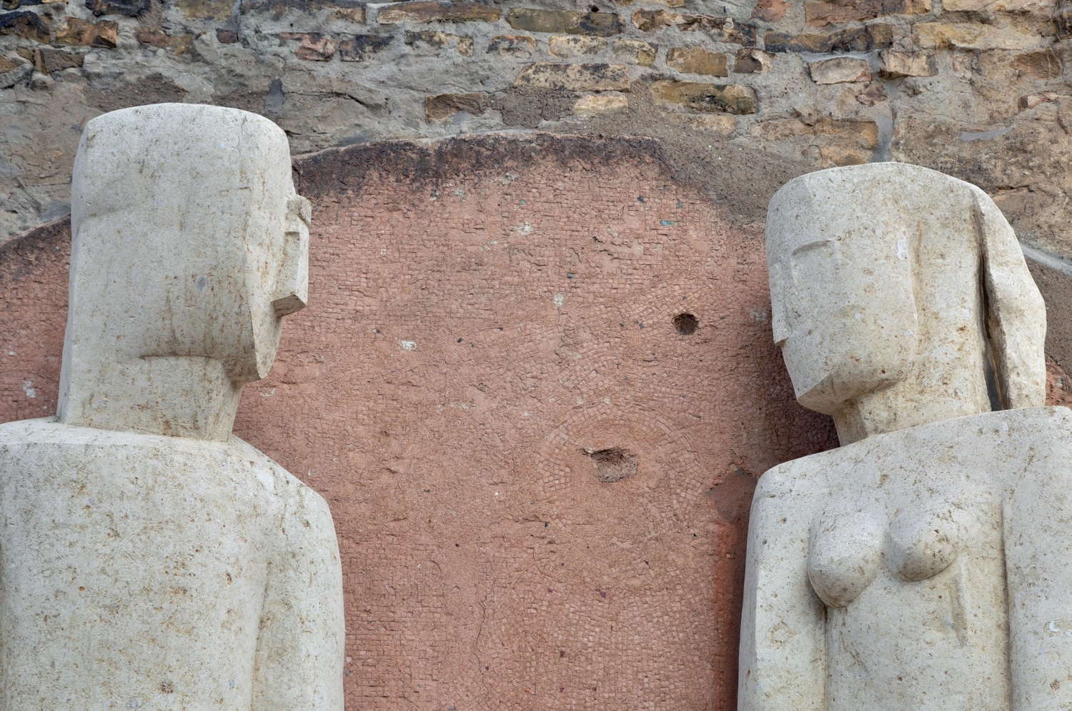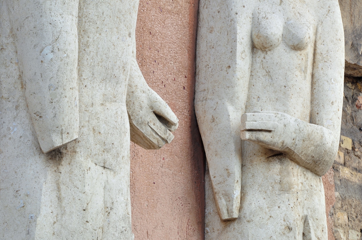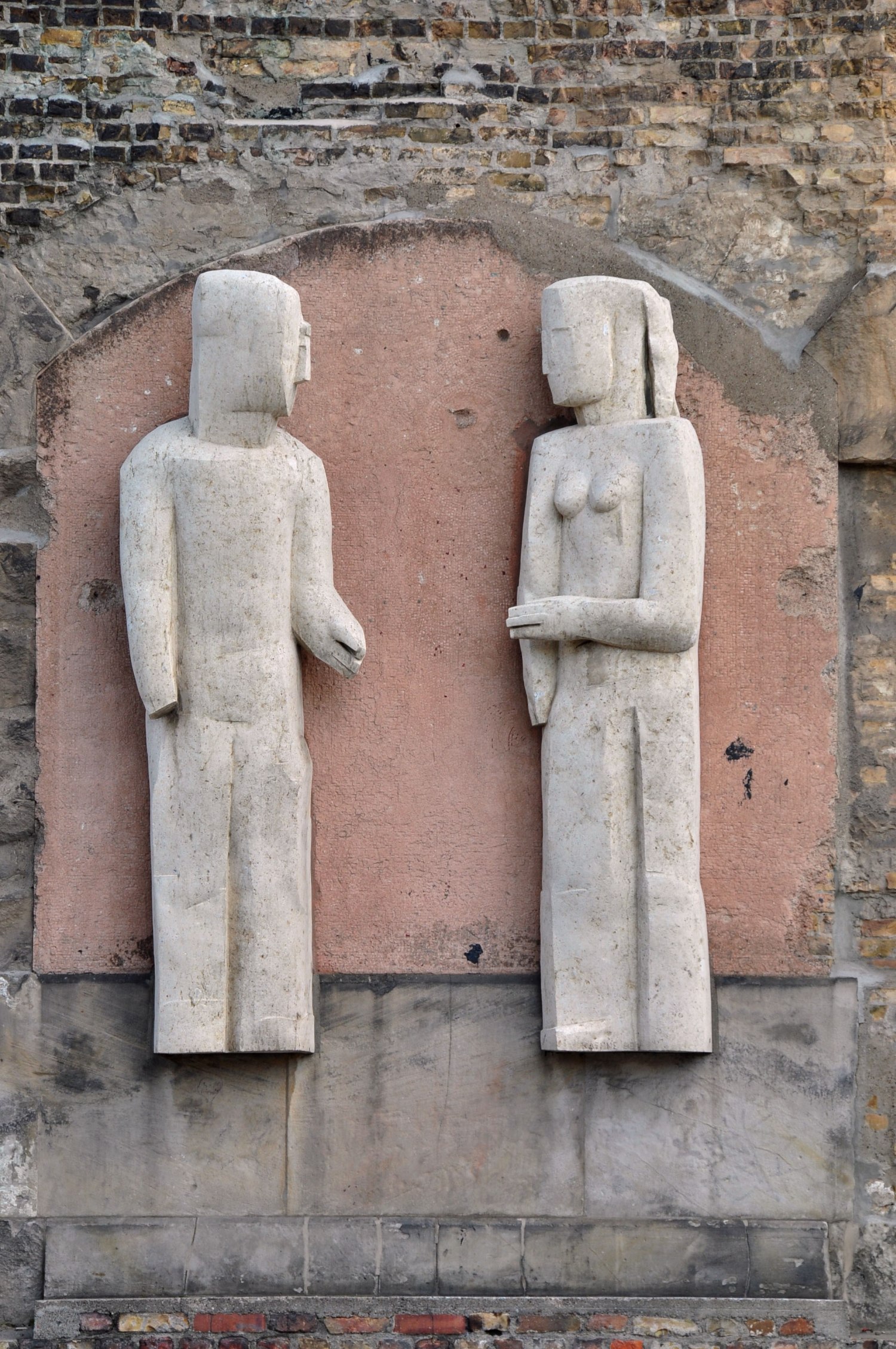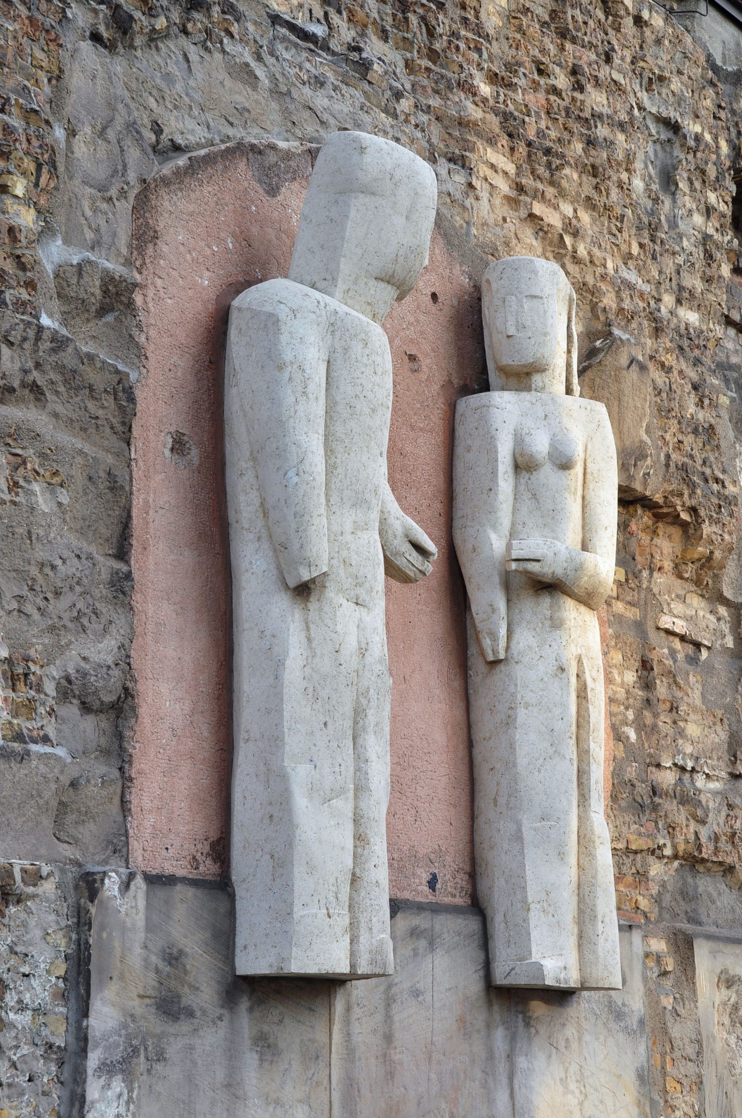 Stefan Kaehne engagierte Frau Schostak für die Ausführung seiner zwei Figurenpaare in Sandstein.