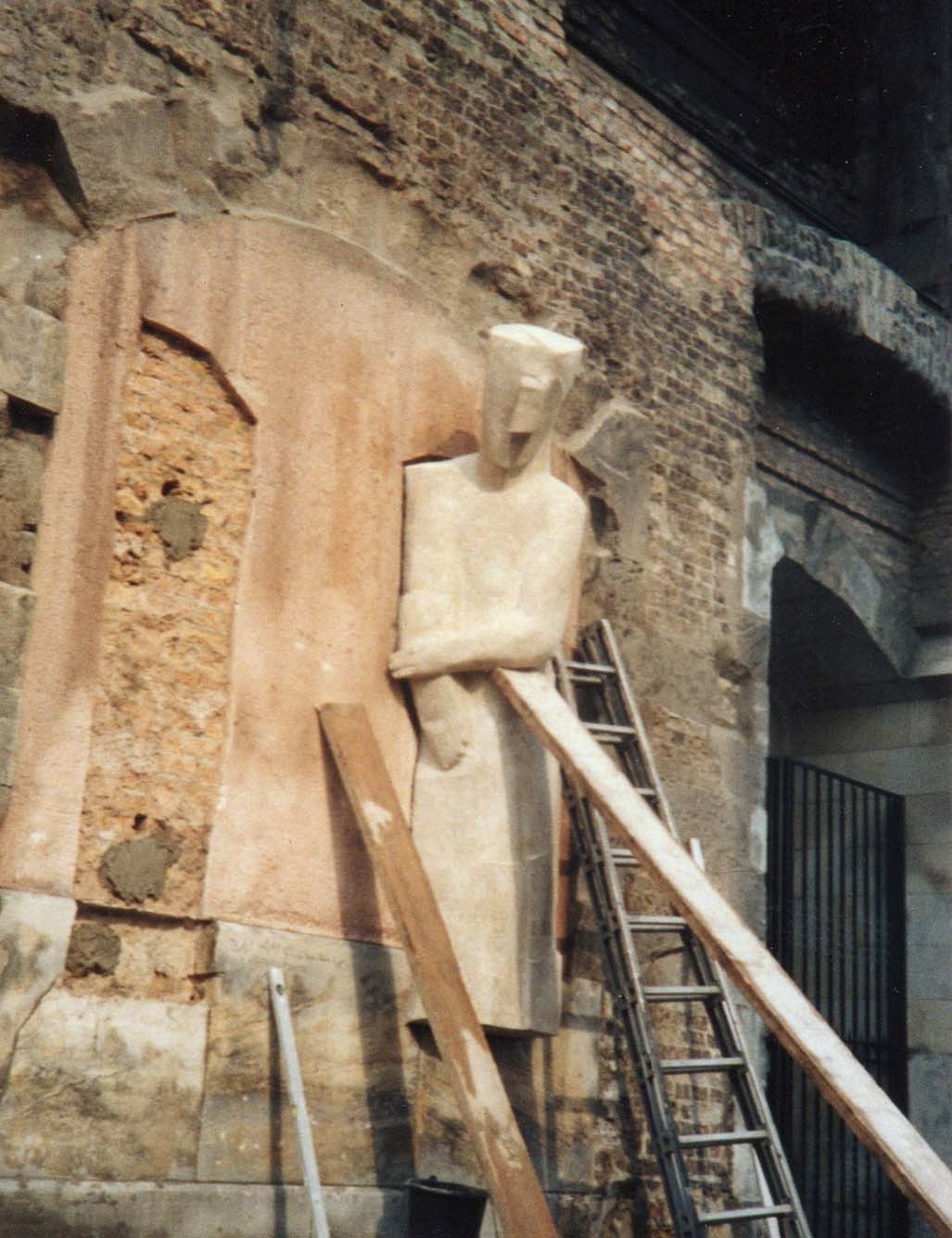 Stefan Kaehne engagierte Frau Schostak für die Ausführung seiner zwei Figurenpaare in Sandstein.