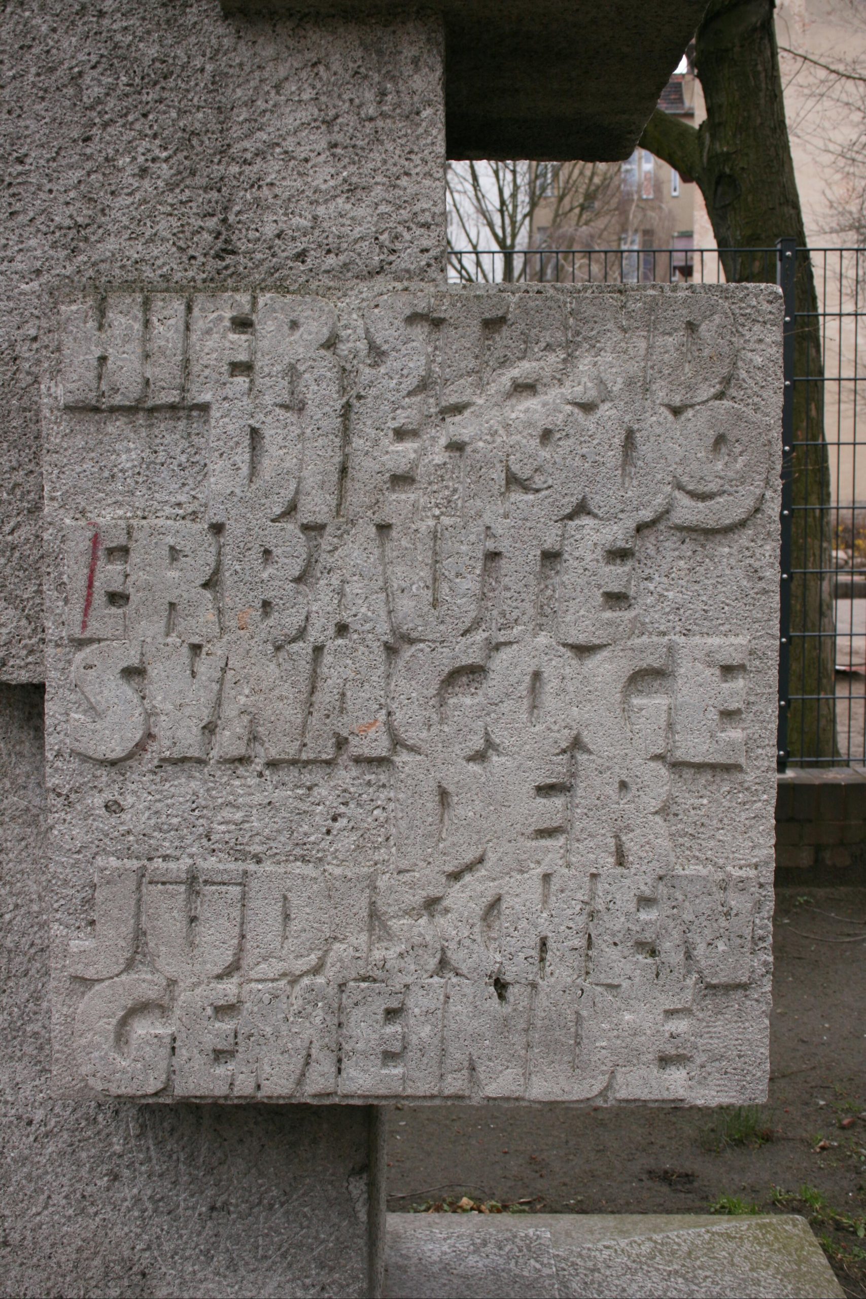 »HIER STAND / DIE 1909 / ERBAUTE / SYNAGOGE / DER / JÜDISCHEN / GEMEINDE«