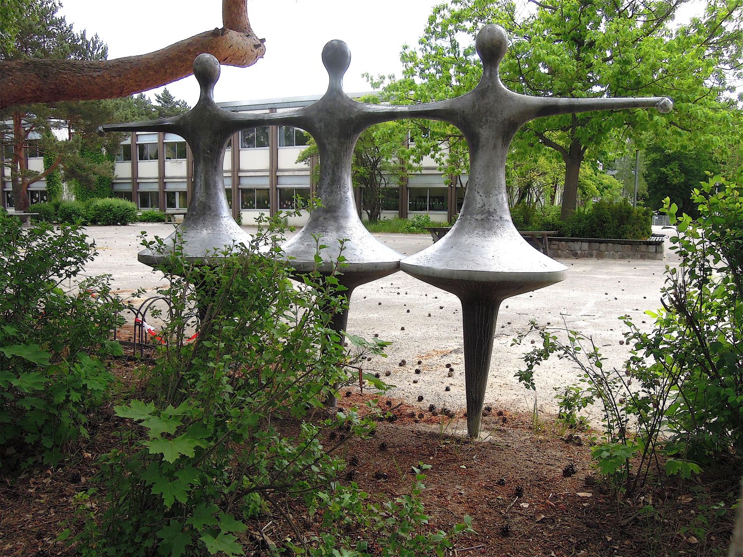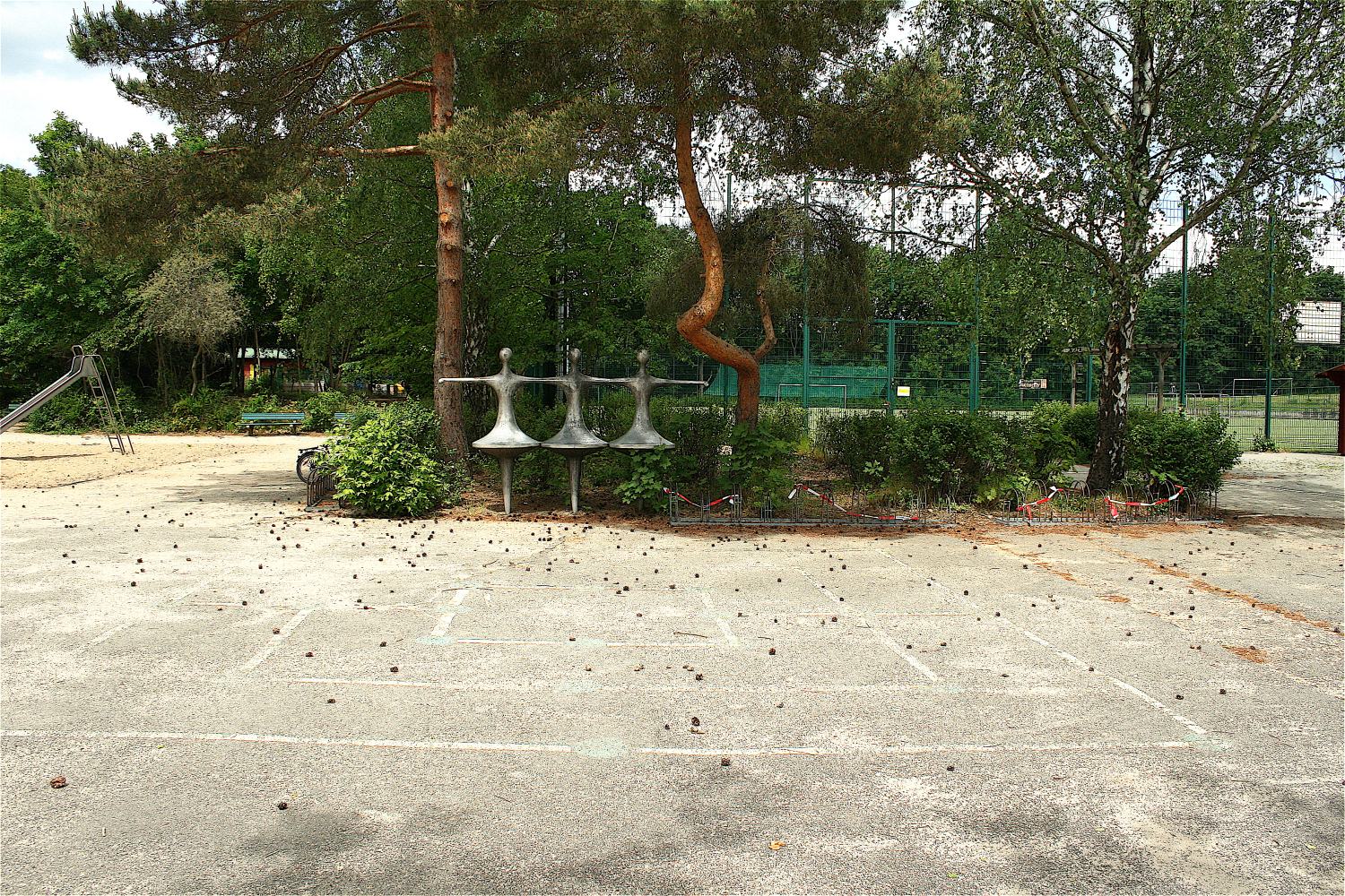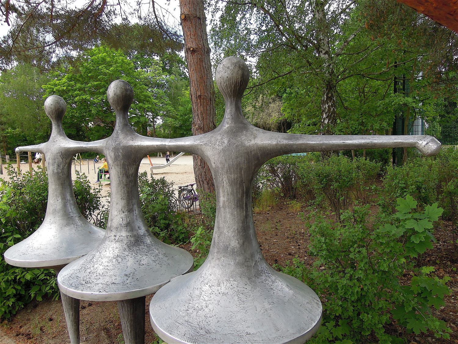 Die Aluminiumplastik Tänzerinnen von Alfred Trenkel, auch als Mädchengruppe bezeichnet, ist am Rande eines großen Schulhofes aufgestellt, der auch für sportliche Betätigungen der Schüler und Schülerinnen der sportbetonten Grundschule genutzt wird. Sie stellt drei tanzende Mädchen dar, die sich mit ausgestreckten Armen anfassend in einer charakteristischen auf der Fußspitze stehenden Ballerina-Pose verharren. Die Figuren der Ballerinagruppe zeigt Trenkel stilisiert als spiegelbildlich gleiche überlebensgroße Tänzerinnen. Die Oberfläche des Aluminiumgusses ist durch Ritzungen aufgerauht, wodurch die Abstraktion der Figuren Lebendigkeit gewinnt. Vor der Plastik sind verblasste Bodenbemalungen als Spielfelder des Gymnastikhofes zu erkennen, die die Mädchengruppe stimmig zu einem gesamten Bild vereinen (Jürgen Tomisch, Barbara Anna Lutz).