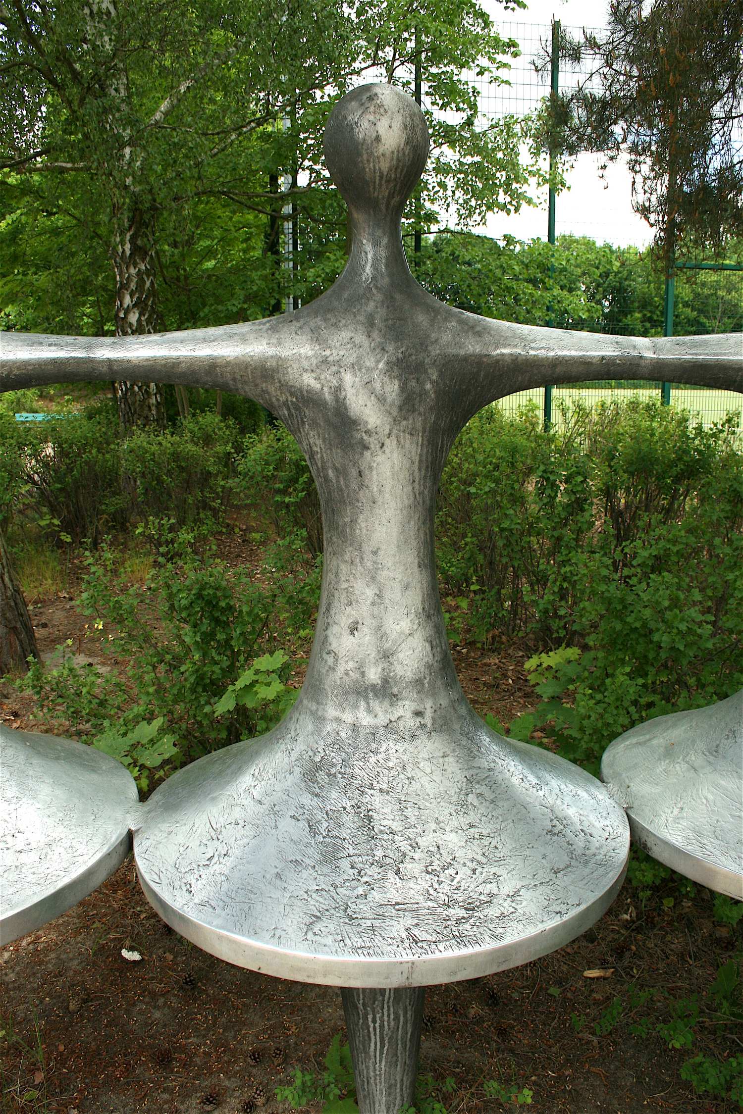 Die von Alfred Trenkel geschaffene Plastik entstand als Kunst-am-Bau-Beitrag für die 1972-73 errichtete Grundschule am Fließtal in Berlin-Hermsdorf, die nach einem Typenentwurf der Arbeitsgemeinschaft Grundschulstandardisierung gebaut wurde. Auf dem weitläufigen Hof entstand ein Gymnastikplatz für die sportbetonte Schule, zu der Sportplätze und eine Turnhalle gehören. Am östlichen Rand des Platzes stellte Trenkel seine Plastik auf – vor ihr sind Bodenfelder für Gymnastikübungen oder Spiele markiert (Jürgen Tomisch, Barbara Anna Lutz).