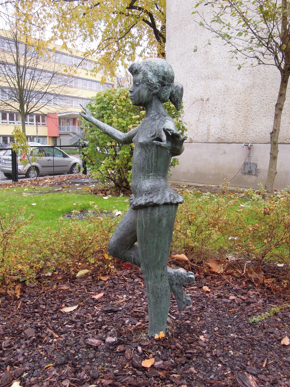 Die Bronzefigur steht auf einer Plinthe, die zum Teil von Mulch und anderem nicht zugehörigem Schüttmaterial verdeckt ist. Auch der Rollschuh des Standbeins ist hierdurch nicht zu erkennen. Sie stellt eine jugendliche Rollschuh-Kunstläuferin in einem charakteristischen tanzenden Bewegungsablauf dar. Das Mädchen steht auf dem linken Rollschuh, während das rechte Bein mit Rollschuh angezogen ist. Die Arme sind balancierend ausgebreitet. Sie trägt ein typisches Kindertanzkostüm für den Roll-schuhkunstlauf: ein langärmeliges Trikot mit Röckchen. Der ovale Kopf der Tänzerin erhält seine Betonung von der kappenartigen Haartracht mit kurzem Pferdeschwanz und hervorquellenden Haaren oberhalb der Stirn. Während der Oberkörper naturnah modelliert ist, sind die Beine etwas zu betont kräftig geformt (Jürgen Tomisch).