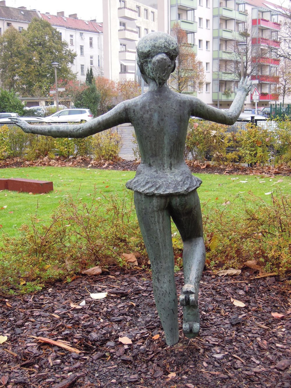 Die Bronzefigur steht auf einer Plinthe, die zum Teil von Mulch und anderem nicht zugehörigem Schüttmaterial verdeckt ist. Auch der Rollschuh des Standbeins ist hierdurch nicht zu erkennen. Sie stellt eine jugendliche Rollschuh-Kunstläuferin in einem charakteristischen tanzenden Bewegungsablauf dar. Das Mädchen steht auf dem linken Rollschuh, während das rechte Bein mit Rollschuh angezogen ist. Die Arme sind balancierend ausgebreitet. Sie trägt ein typisches Kindertanzkostüm für den Roll-schuhkunstlauf: ein langärmeliges Trikot mit Röckchen. Der ovale Kopf der Tänzerin erhält seine Betonung von der kappenartigen Haartracht mit kurzem Pferdeschwanz und hervorquellenden Haaren oberhalb der Stirn. Während der Oberkörper naturnah modelliert ist, sind die Beine etwas zu betont kräftig geformt (Jürgen Tomisch).