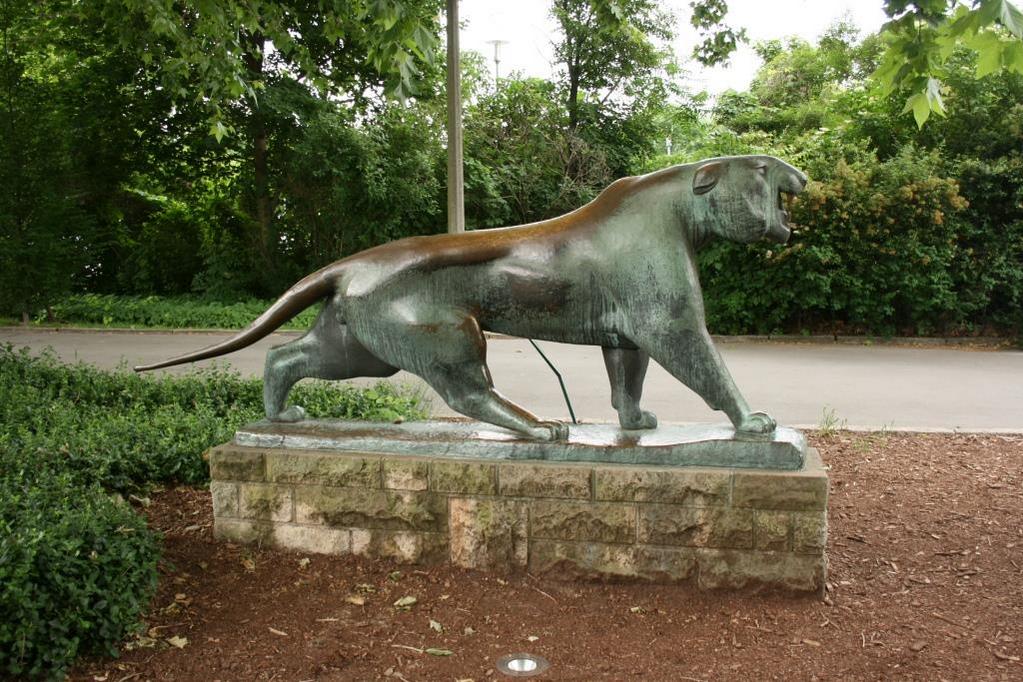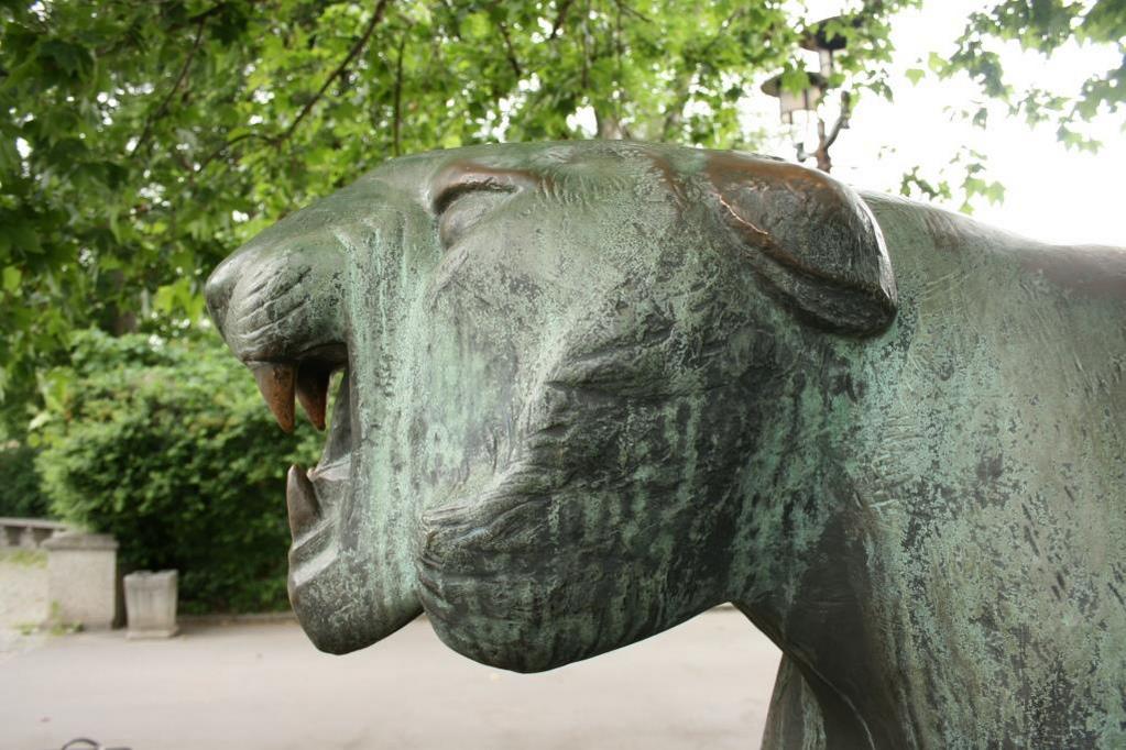 Philipp Harth, der vor seinem 1910 erfolgten Umzug nach Berlin unter anderem Lehrer an der Kunstgewerbeschule in Mainz gewesen war, widmete sich verstärkt ab 1925 der Tierplastik. Gestalterische Einflüsse seines Lehreres Hans Perathoner an der in Charlottenburg bei Berlin ansässigen Kunsthochschule (heute Universität der Künste) lassen sich in seinem Werk erkennen. Bis 1934 war Harth Mitglied der Berliner Secession. Seine 1936-1937 geschaffene Plastik "Tiger" gehört heute zu den bekanntesten Arbeiten Harths. Bronzene Ausformungen des "Tigers" stehen am Rheinufer in Mainz, im Grugapark Essen, an der Kunsthalle in Mannheim sowie im Innenhof des Pommerschen Landesmuseums in Greifswald. Die Ausformung in Berlin vor dem Tierpark wurde 1987 aufgestellt (Jörg Kuhn).