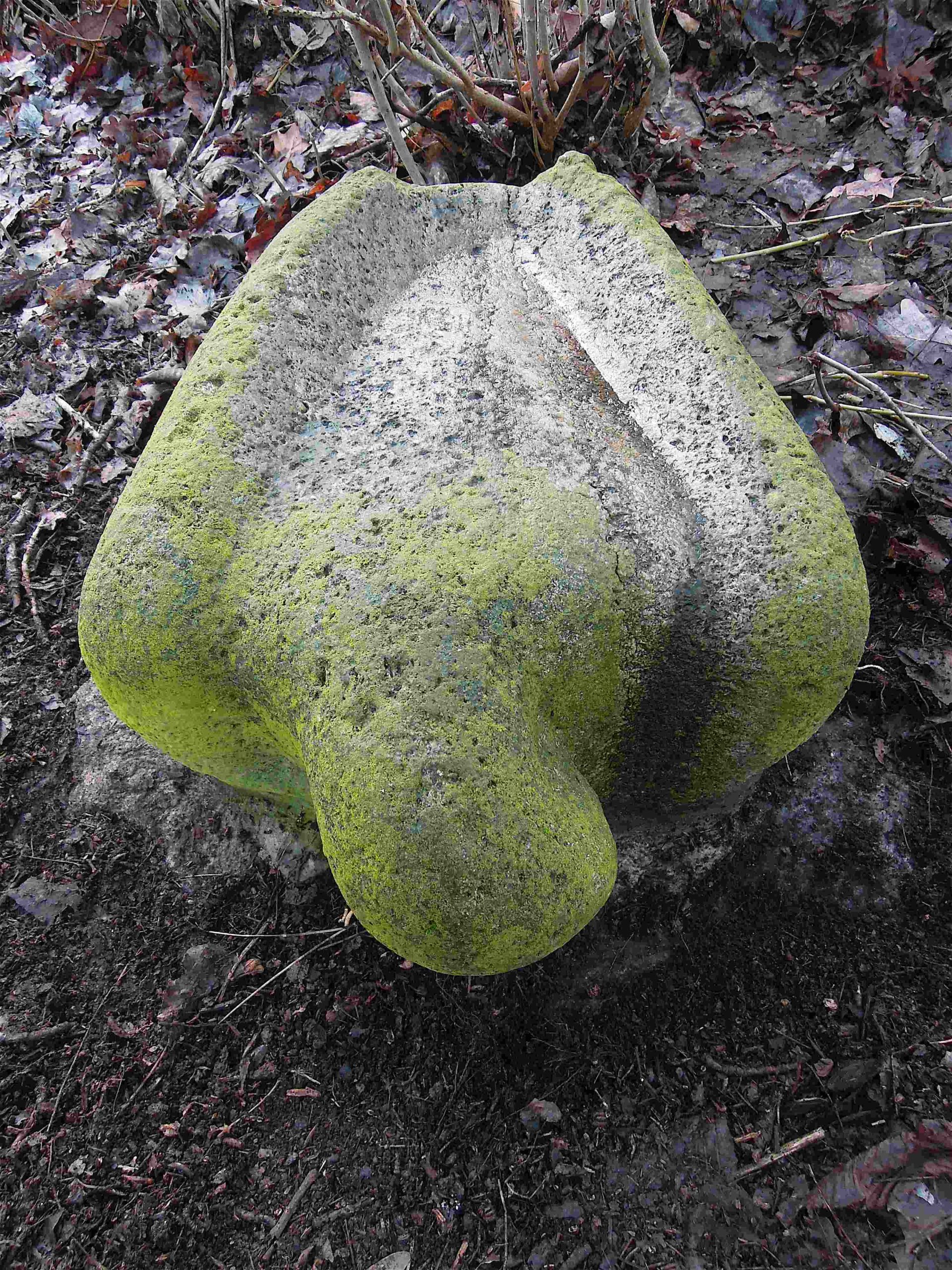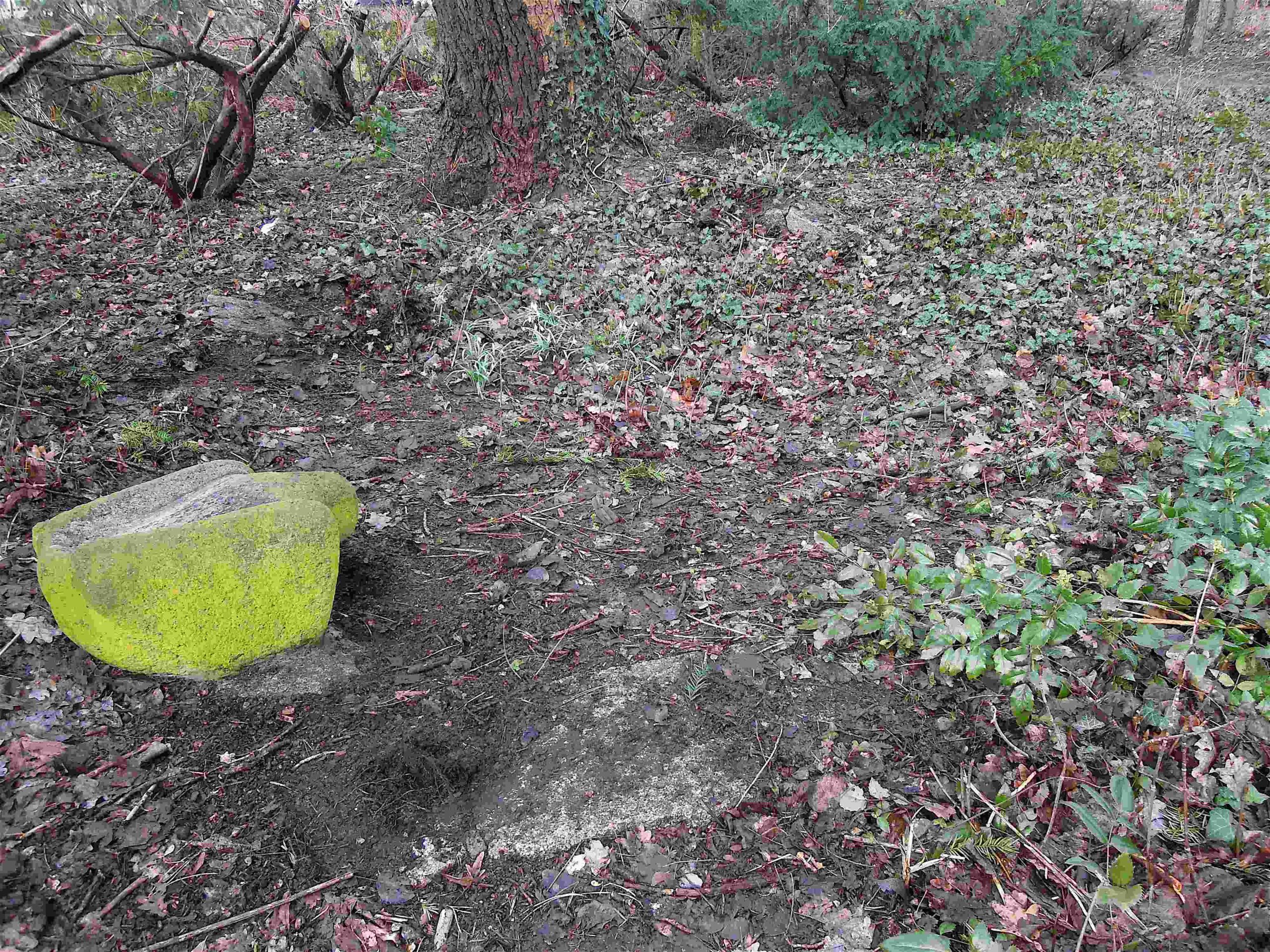 unvollständig, gesamte Anlage eingewachsen und überwachsen, nur einzelne Steinkanten des Beckens "nach "Freilegung" erkennbar, möglicherweise fehlen auch Steine der Begrenzung