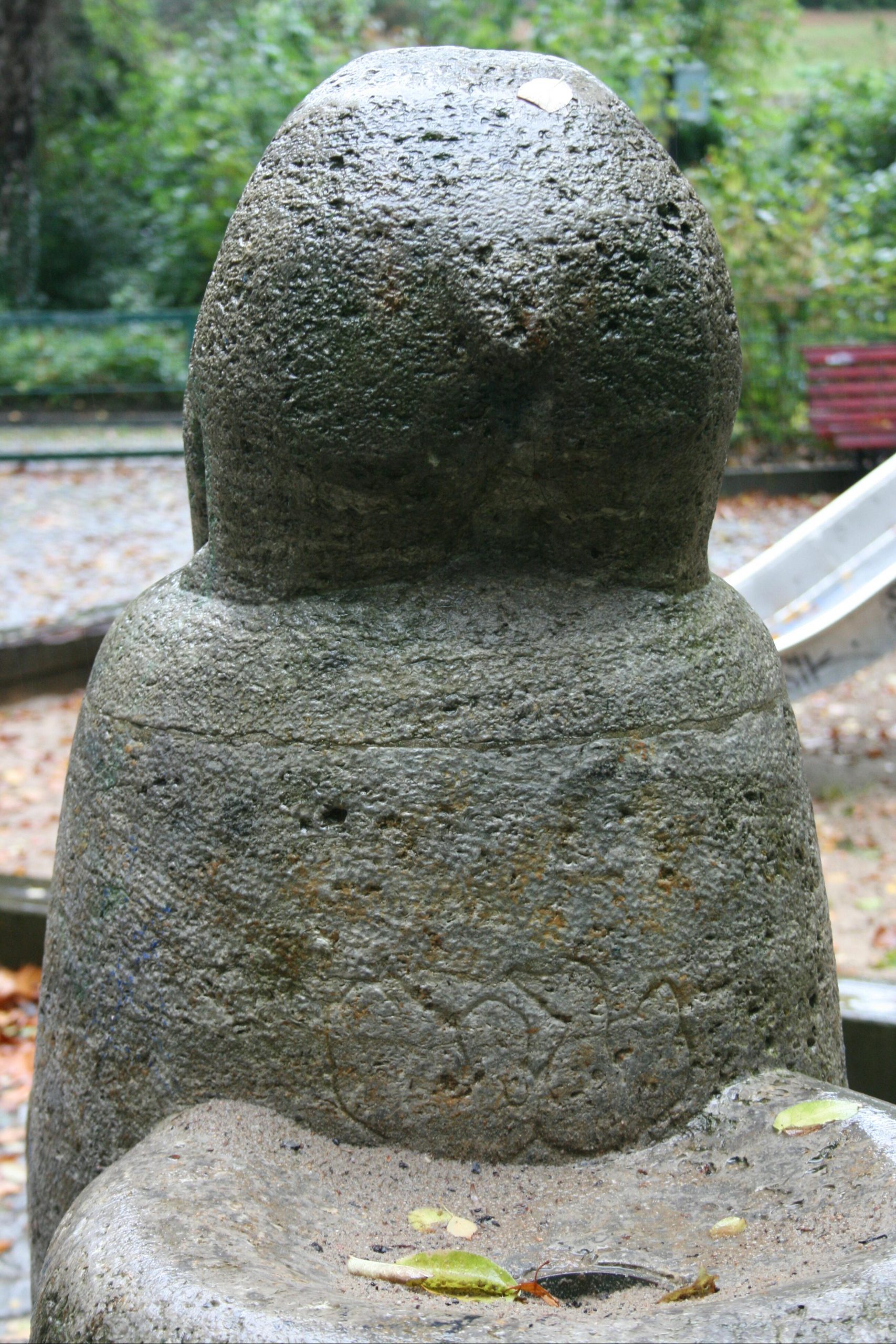 Auf einer runden, aus Kunststeinsegmenten gebildeten Standfläche steht der Brunnen mit einem hohen Mittelstück, dem seitlich vier unterschiedlich hohe Stücke mit Brunnenmulden und Metalldüsen angegliedert sind. Die unteren ¾ des Brunnens sind aus einem Monolithen gearbeitet. Auf dem separat gearbeiteten Mittelteil steht auf seinen vier Tatzen auf runder Plinthe ein stilisiert formulierter Bär, das Maul zum Wasserbecken unter ihm zugewandt. In die Trinkstütze sind jeweils über einer Brunnenmulde Tierdarstellungen eingeritzt: Storch, Frosch, Reh, zwei Enten.