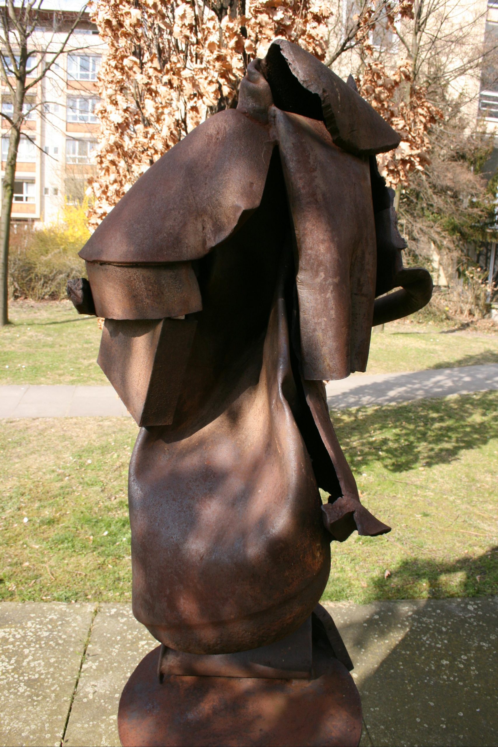 Das Konzept zu einem Skulpturengarten auf dem Gelände des Auguste-Viktoria-Krankenhauses wurde bereits Ende der 1980er Jahre entwickelt und geht u. a. auf die Initiative des dort tätigen Chefarztes Professor Dr. med. Manfred L’age zurück. Maßgebliche Gedanken waren die Fragen um Trost und Genesungshilfe für Kranke und Besucher. Zeitgenössische Kunst sollte Denkanstöße während der Grenzerfahrung einer Krankheit geben. Beteilig an der Ausarbeitung waren neben L’age die Kunsthistoriker Jörn Merkert und und Eberhard Roters (Berlinische Galerie) sowie der Architekt Thomas Baumann und der Gartenarchitekt Elmar Knippschild. Finanzielle Förderung erfuhr das Projekt ab 1990 vom Senator für Bauen, Wohnen und Verkehr als „baubegleitendes gestrecktes Verfahren“. Im Mai 1999 wurde der Skulpturengarten des Auguste-Viktoria-Krankenhauses eröffnet, damals stellten hier 21 Künstler aus (einige Plastiken befanden und befinden sich zusätzlich im Innenraum). Die Ausstellung wurde 2000 erweitert und hat sich seitdem vielfach verändert, einige der ursprünglichen Objekte stehen heute nicht mehr vor Ort, zahlreiche andere, hauptsächlich Leihgaben der Berlinischen Galerie und Leihgaben und Schenkungen einzelner Künstler sind hinzugekommen (Jörg Kuhn, Susanne Kähler).