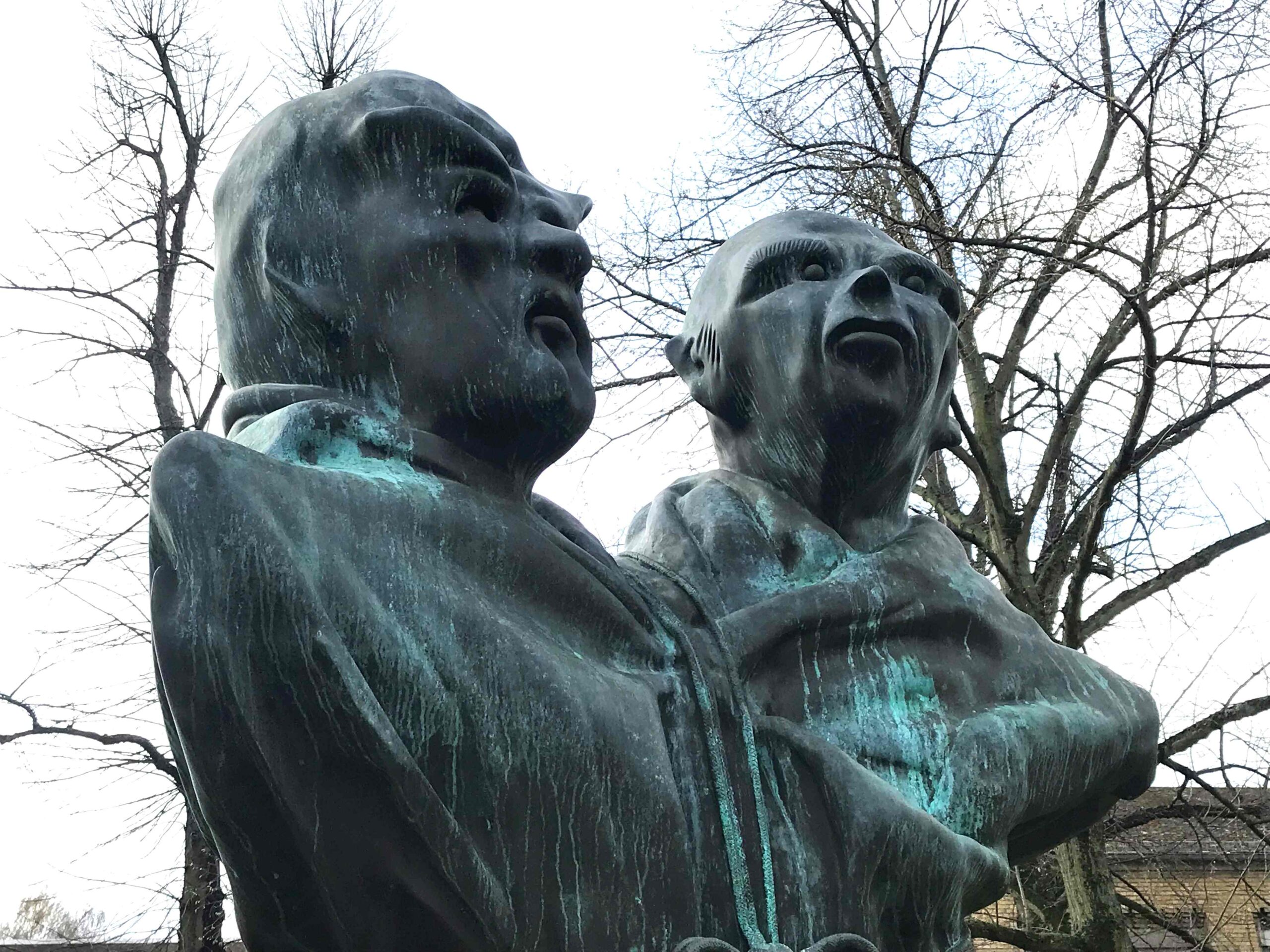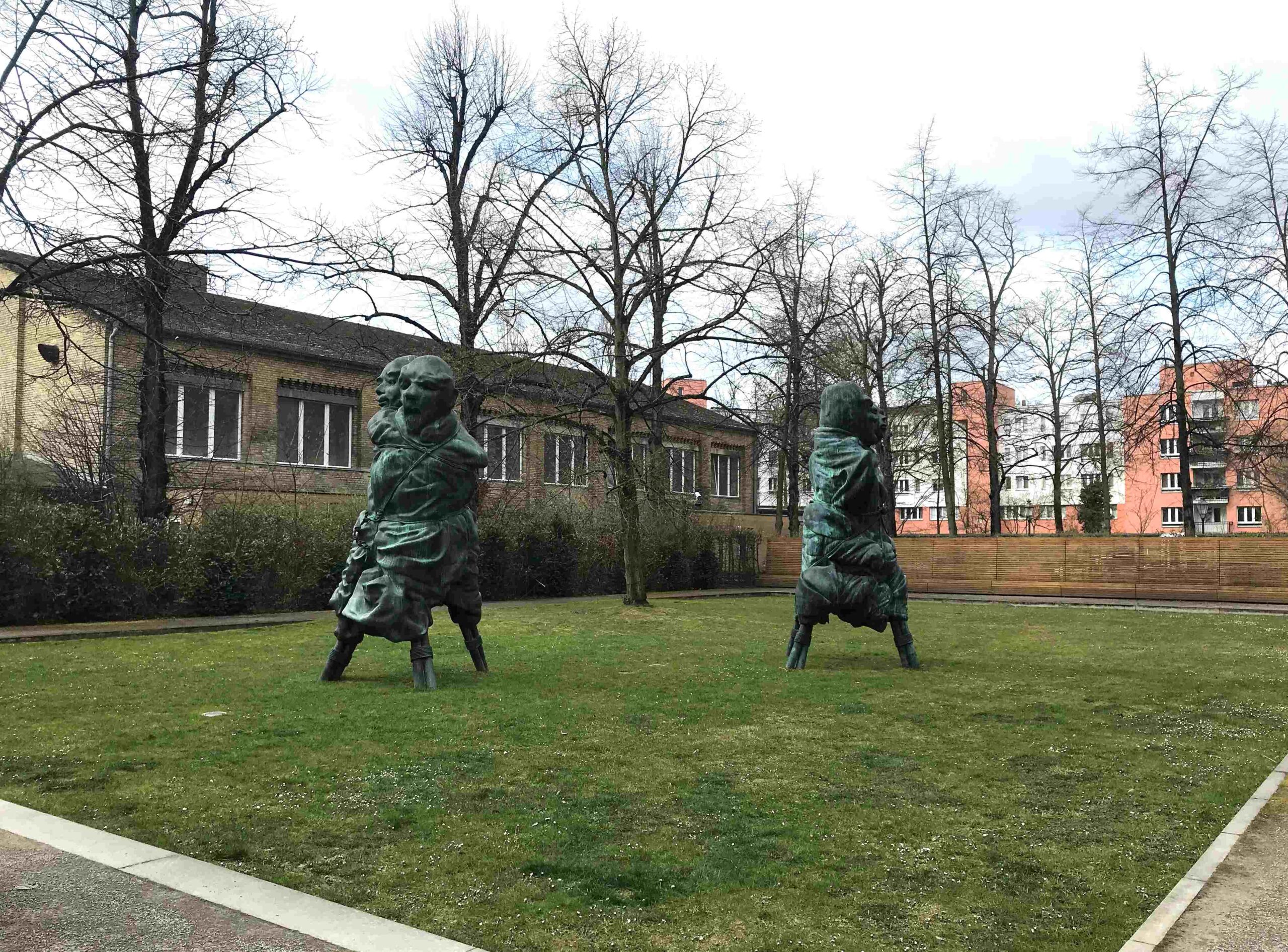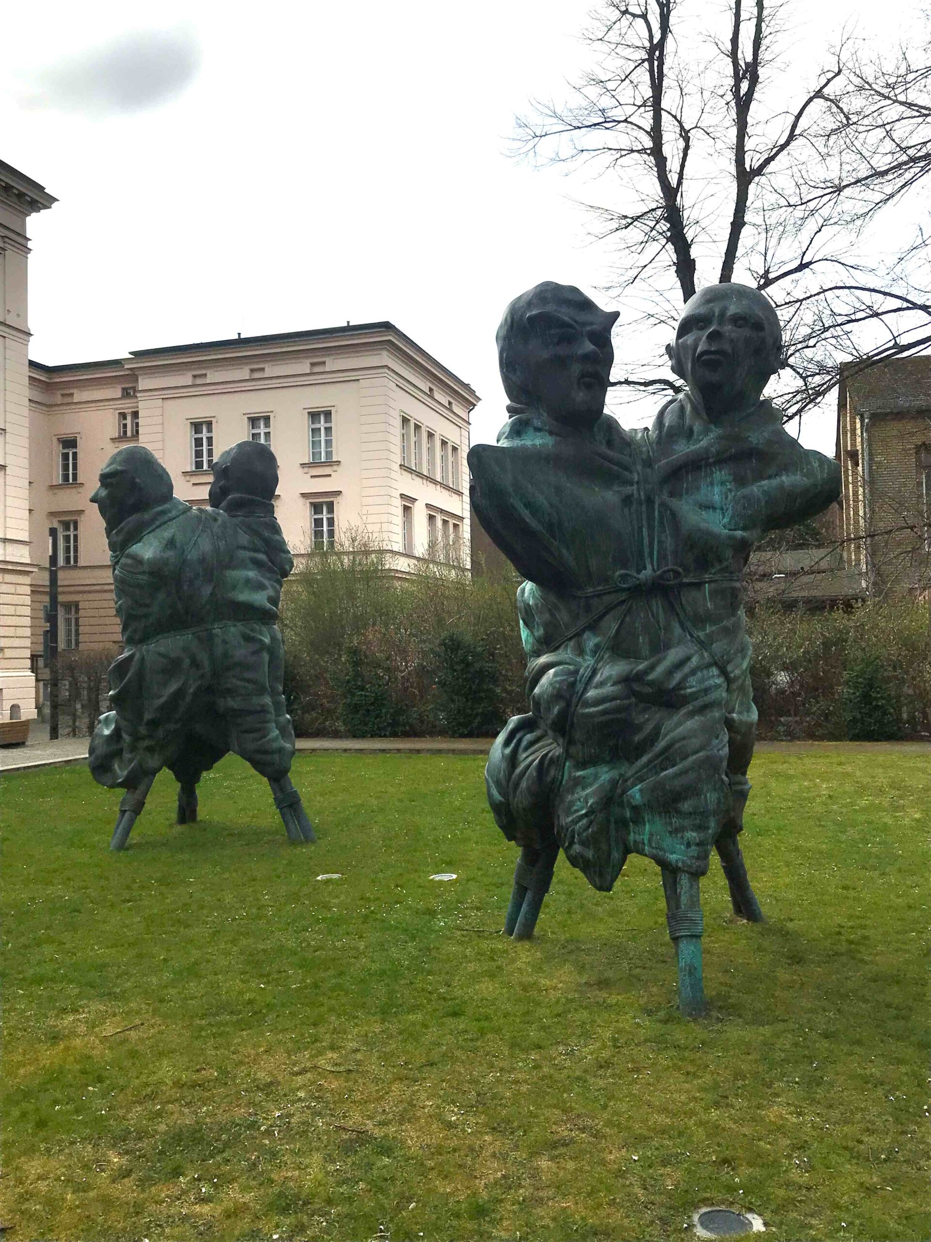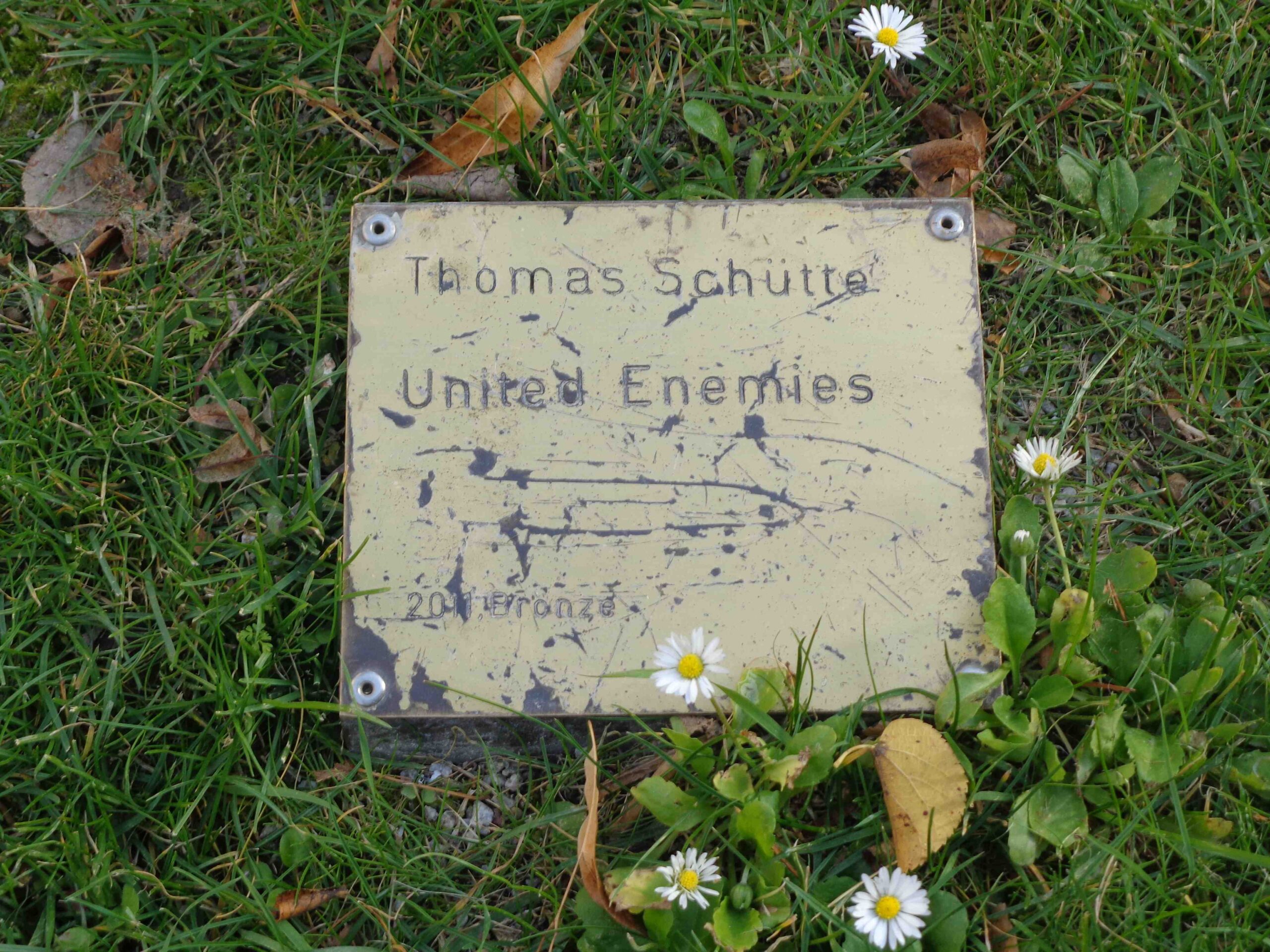 Plakettevor dem Kunstwerk im Boden eingelassen»Thomas Schütte / United Enemies / 2011, Bronze«