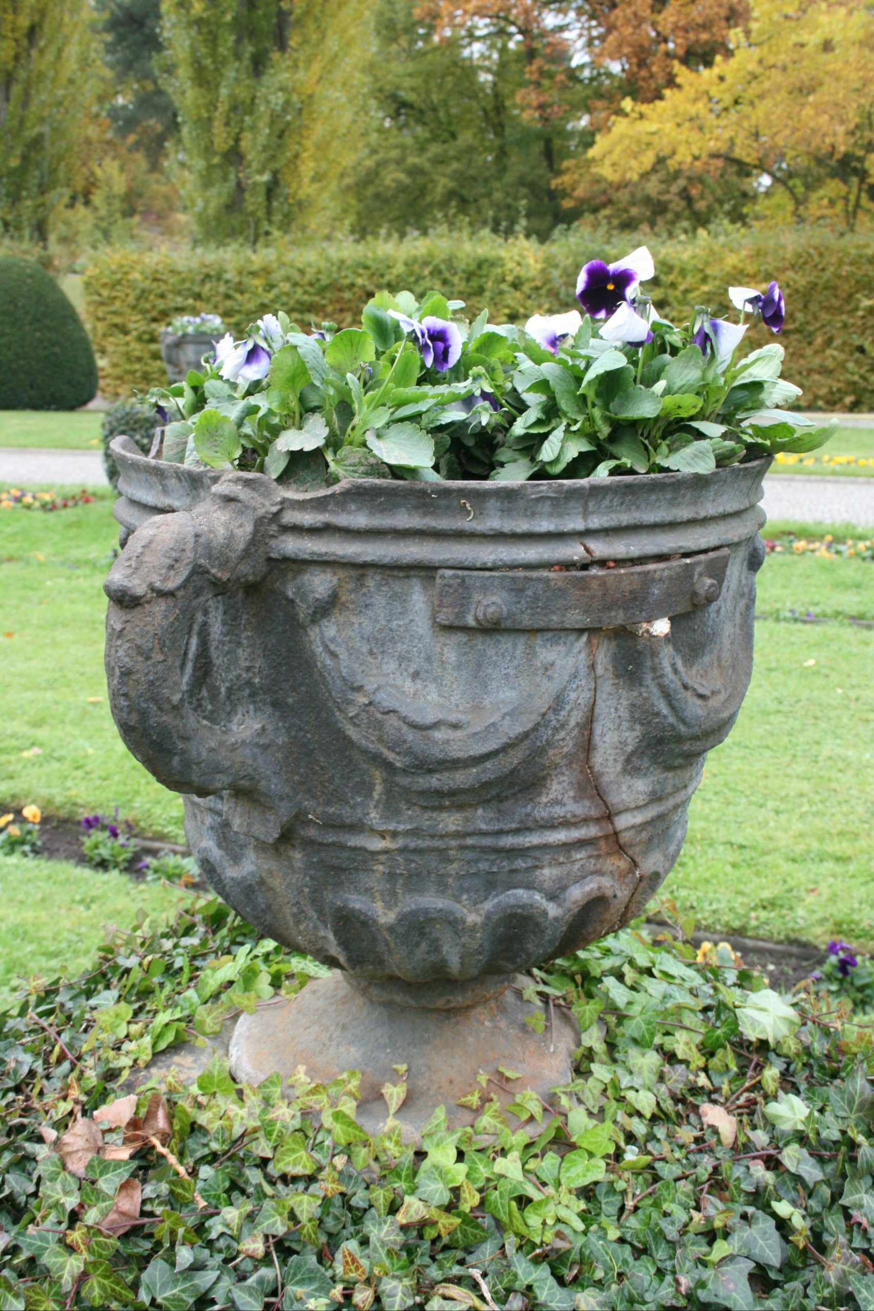 Im Botanischen Garten gibt es zwei Bereiche, in denen von etwa 1897 bis 1903 historische Pflanzkübel in Vasengestalt aus dem Alten Botanischen Garten in Berlin-Schöneberg aufgestellt wurden. Die Mehrzahl der gusseisernen „Vasen“ befindet sich im so genannten Italienischen Garten aufgestellt und zwar paarweise im Verlauf der Kaskade. Die anderen Vasen sind im Eingangsbereich des Eingangs von der Straße Unter den Eichen aufgestellt, unweit des „Sämanns“ von Pagels. Aus dem Alten Botanischen Garten stammen vermutlich die eisernen Blumenbehältnisse („Vasen“), die den Italienischen Garten zieren. Die „Vasen“ entsprechen in ihrer Gestaltung den „Vasen“ im Schlosspark Charlottenburg und dürften (nach dem grundlegenden Gutachten zum Schlosspark Charlottenburg von Clemens Alexander Wimmer) aus dem 17. Jahrhundert stammen (vielleicht einige auch aus dem 18. Jahrhundert?). Eine Datierung in das 19. Jahrhundert, wie sie die „Hauspublikation“ des Botanischen Gartens vorschlägt, ist nicht durch entsprechende Dokumente abgesichert, während ein Vergleich der Vasen im Botanischen Garten mit den nachweislich barocken Vasen im Schlosspark von Charlottenburg und in der Sammlung der Stiftung Stadtmuseum Berlin zeigt, dass hier eine Übereinstimmung besteht. Damit dürfte auch die in der „Hauspublikation“ vermutete Herkunft der Vasen aus der erst 1804 gegründeten und 1874 geschlossenen Königlichen Eisengießerei (Invalidenstraße) zumindest fragwürdig sein (vgl. Isolde Hagemann u. Bernhard Zepernick (Hrsg.): Der Botanische Garten Berlin-Dahlem. Führer durch das Freiland und die Gewächshäuser, Berlin 1992, S. 96). Sie sind vermutlich schon für den Alten Botanischen Garten in anderen königlichen Gärten zusammen gesammelt worden. Zwischen 1897 und 1903 dürften sie nach Dahlem transloziert worden sein. Die Aufstellung der „Vasen“ in Dahlem/Steglitz entspricht der vorgenommenen Aufstellung nach 1900. Die drei eisernen Blumenbehältnisse („Vasen“, „Kratere“) im Bereich des südlichen Einganges Unter den Eichen stammen vermutlich auch aus einem anderen historischen Zusammenhang und könnten auch nach 1897 aus dem Alten Botanischen Garten nach Dahlem überführt worden sein. Ihre jetzige Aufstellung rührt von 1992/93 her. (Jörg Kuhn)