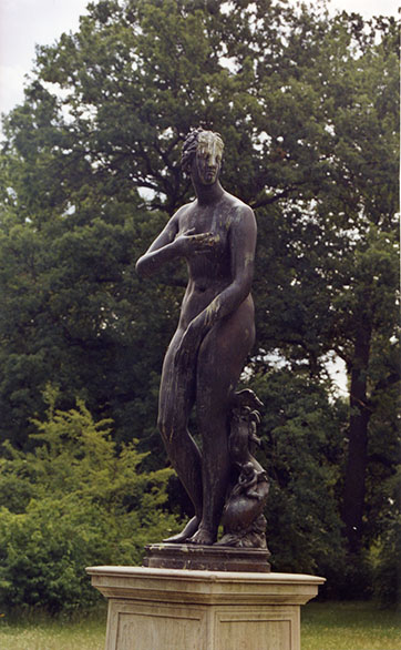 Das antike Original zur Venus Medici befand sich seit 1584 im Besitz der fürstlichen Familie Medici und befindet sich heute in Florenz, Galleria degli Uffizi (Bildhauer Kleomenes, Sohn des Apollodoros aus Athen, 1. Jh. v. Chr., rechter Arm und linker Unterarm ergänzt, Marmor, H. 1,53 Meter, ohne Plinthe). König Friedrich Wilhelm III. von Preußen hat im Zuge der Bestückung der Charlottenburger Parkanlage mit Antikenkopien an dieser Stelle 1832 einen Bronzeabguss der Venus von Medici aufstellen lassen, er erwarb sie von dem Gießer Lequine, der sie 1828 erstmals auf der Akademie-Ausstellung zeigte. Dieser Bronzeabguss ging im Zweiten Weltkrieg verloren. Zum Lenné-Jahr 1989 wurde ein Neuguss aufgestellt (Susanne Kähler).