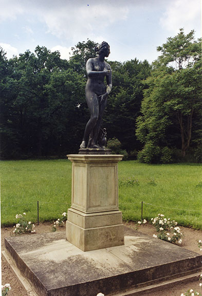 Das antike Original zur Venus Medici befand sich seit 1584 im Besitz der fürstlichen Familie Medici und befindet sich heute in Florenz, Galleria degli Uffizi (Bildhauer Kleomenes, Sohn des Apollodoros aus Athen, 1. Jh. v. Chr., rechter Arm und linker Unterarm ergänzt, Marmor, H. 1,53 Meter, ohne Plinthe). König Friedrich Wilhelm III. von Preußen hat im Zuge der Bestückung der Charlottenburger Parkanlage mit Antikenkopien an dieser Stelle 1832 einen Bronzeabguss der Venus von Medici aufstellen lassen, er erwarb sie von dem Gießer Lequine, der sie 1828 erstmals auf der Akademie-Ausstellung zeigte. Dieser Bronzeabguss ging im Zweiten Weltkrieg verloren. Zum Lenné-Jahr 1989 wurde ein Neuguss aufgestellt (Susanne Kähler).