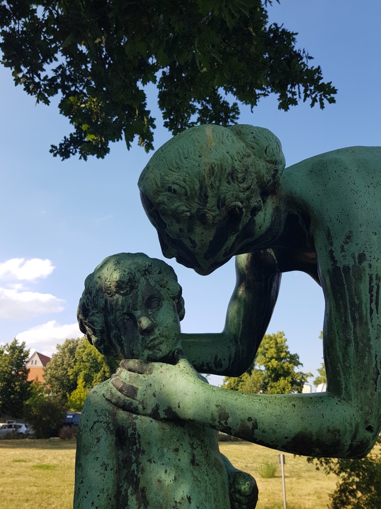 Lebensgroße Darstellung der Fürsorge von Venus zu ihren Sohn Eros (lat. Amor), nachdem dieser von einer Biene gestochen wurde. Das Motiv orientiert sich an die Griechische Mythologie und einer Dichtung des Anakreon.