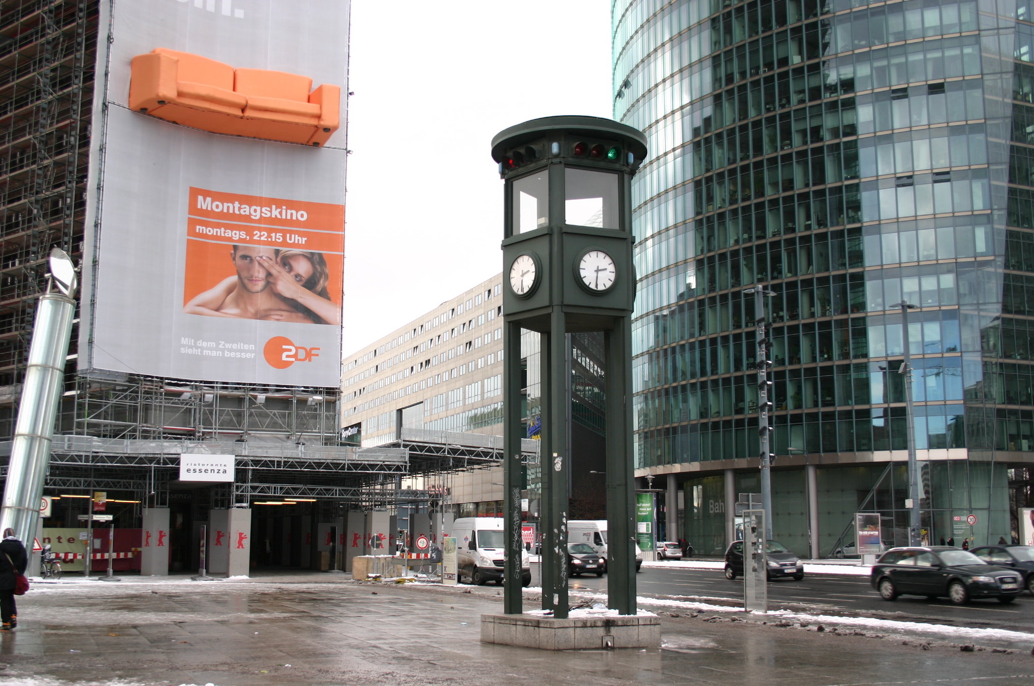 »Verkehrsturm vom Potsdamer Platz / aus dem, Jahre 1924 / Nachbildung der ersten Lichtsignalanlage Deutschlands / gestiftet der Stadt Berlin / von der Daimler-Benz AG und der Siemens AG / Aufstellung am Leipziger Platz / Berlin, 25. September 1997 / Aufstellung am Potsdamer Platz / Berlin, den 29. September 2000«