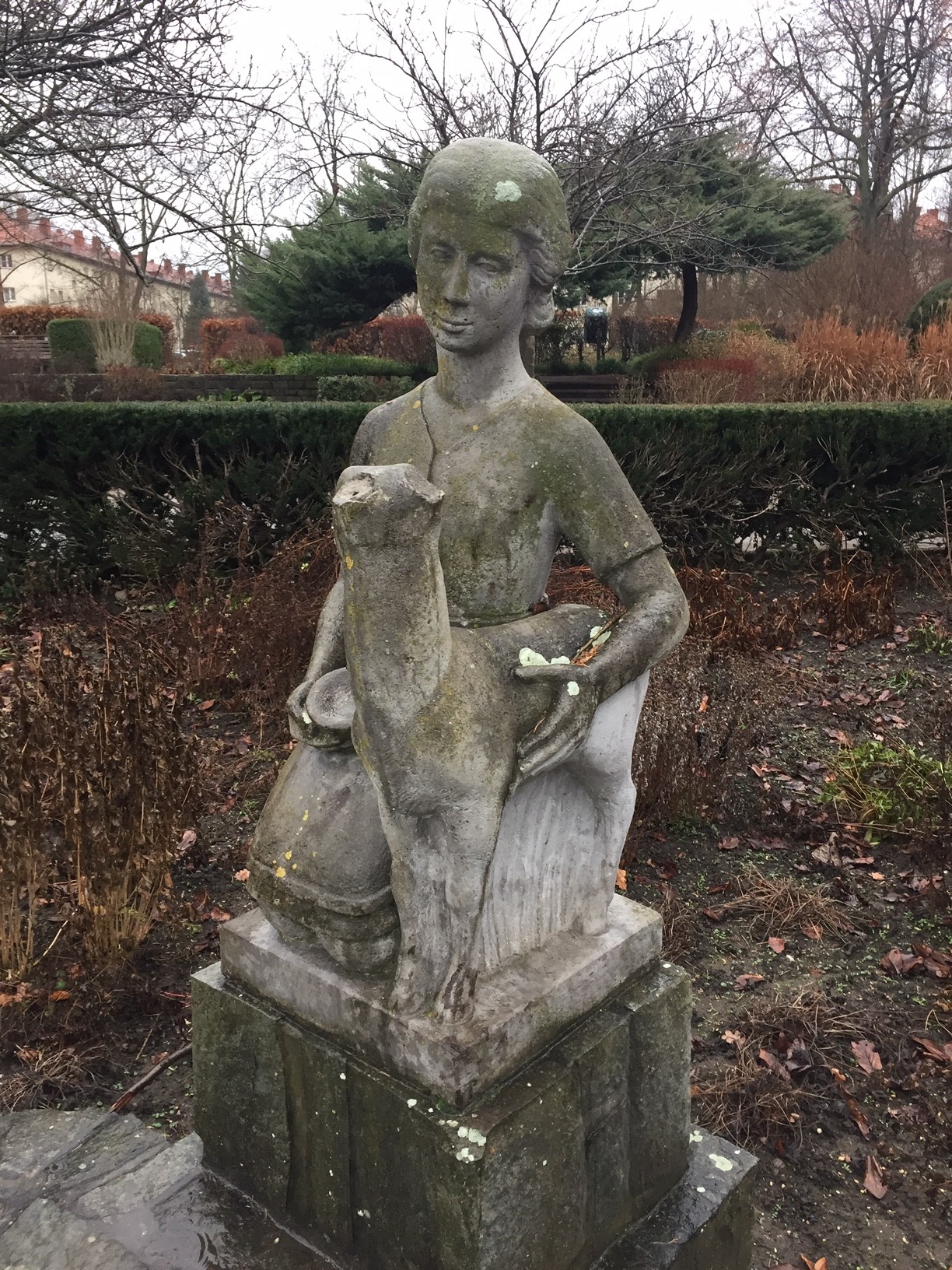 1933 schuf Zuchandtke für den neu angelegten Staudengarten zwei Figurengruppen, 1936 zwei weitere. Diese Figuren wurden am 8. Mai 1981 zerstört. 2001 schuf Starcke anhand historischer Fotos Neuschöpfungen der verlorenen vier Gruppen.