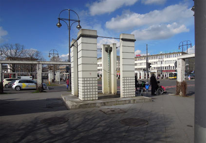 Die Installation der „Vier Wassertempel“ erfolgte im Zuge einer Umgestaltung des Kurt-Schumacher- Platzes 1989. Der Entwurf hierzu ging aus einem Gestaltungswettbewerb hervor, den die Architekten des am Platz gelegenen Einkaufszentrums „Der Clou“, Otto Sternecker und Leopold Starr, für sich entscheiden konnten. Wie die „Vier Wassertempel“ war auch schon das 1987 erbaute und 1988 eingeweihte Einkaufszentrum aus Betonfertigteilen errichtet worden. Für die Passage im „Clou“ schuf das Architektenteam im selben Jahr, 1989, die „Wasserwände“, ein gläsernes Wasserspiel. Während die „Vier Wassertempel“ wohl 2000 noch intakt waren und keine Sanierung erfolgen musste, war zumindest einer der Brunnen ab 2008 vier Jahre defekt, bevor er 2012 repariert und instand gesetzt wurde. Der Kurt-Schumacher-Platz, ist weniger ein Platz als ein wichtiger Verkehrsknotenpunkt Reinickendorfs. Hier kreuzen sich die Scharnweberstraße (ostwestliche Richtung) und der Kurt-Schumacher-Damm, der in Richtung Süden auf die Autobahn führt. Am 4. August 1955 wurde der Platz nach dem Sozialdemokraten Kurt Schumacher benannt. Nach Schließung des Tegeler Flughafens, soll der Kurt-Schumacher-Platz umgebaut werden „zu einem attraktiven Eingangstor für das neue Kurt-Schumacher-Quartier“ (Fahrun, Joachim, in: http://www.morgenpost.de/bezirke/reinickendorf/article216427889/Kurt-Schumacher-Platz-wird- nach-dem-Tegel-Aus-umgebaut.html [09.08.2020]). Das Architektenduo Sternecker und Starr planten die Brunnenanlage nach oben hin offen. So kann die sprudelnde Anlage auch aus der Luft betrachtet werden und ist den anfliegenden Fluggästen sichtbares Merkzeichen. Für die vier Wassertempel an den vier Kreuzungsecken des Kurt-Schumacher-Platzes zogen die Architekten berankte einreihige Pergolen, Tempel-Pavillons, Brunnen und historisierende Straßenleuchten als Zitate vergangener Baustile heran. Sie griffen damit den „Stil der Postmoderne [auf, der] prägend für die Platzgestaltung [der ...] späten 70er und 80er Jahre in der BRD [war ...]. Allgemein wirken die Plätze dabei sehr klar gegliedert, die einzelnen Elemente sind in der Regel kompakt und kubisch in ihrer Ausführung.“ (Glaubau, 2010, S. 321 f.). Obschon die „Vier Wassertempel“ mit ihren historisierenden Zitaten wohl charakteristisch für die Zeit ihrer Entstehung sind, stellen sie, als künstlerische Stadtmöblierung, im Œuvre der Architekten Sternecke und Starr eher eine Ausnahme dar. Planungen zum Umgang mit den Brunnen liegen noch nicht vor (Jürgen Tomisch, Barbara Anna Lutz).