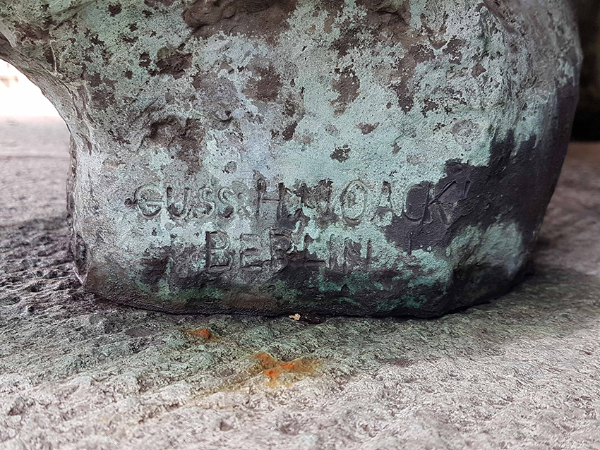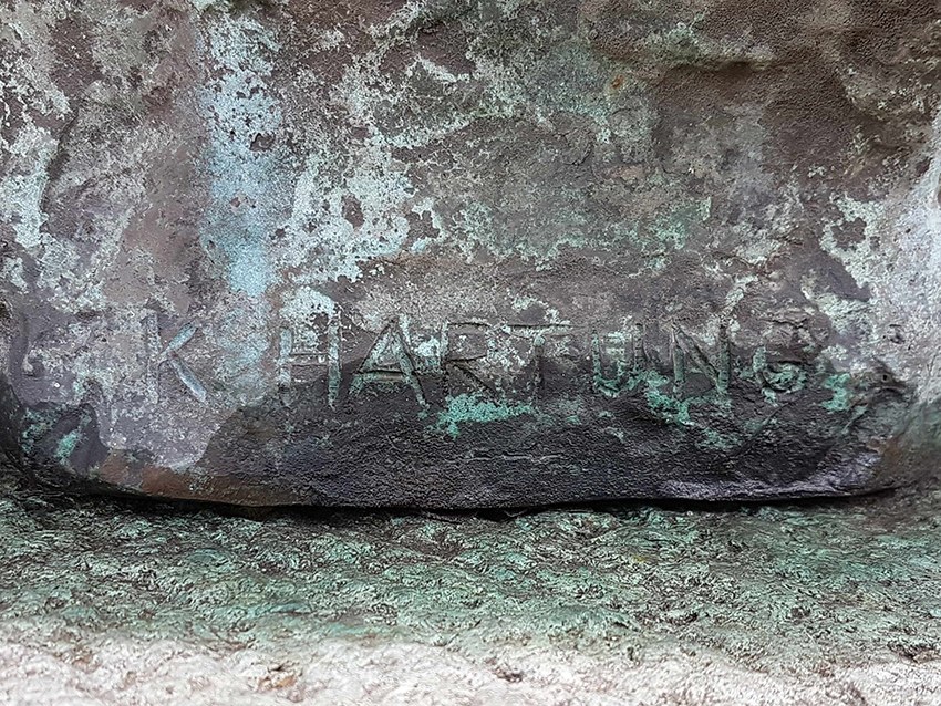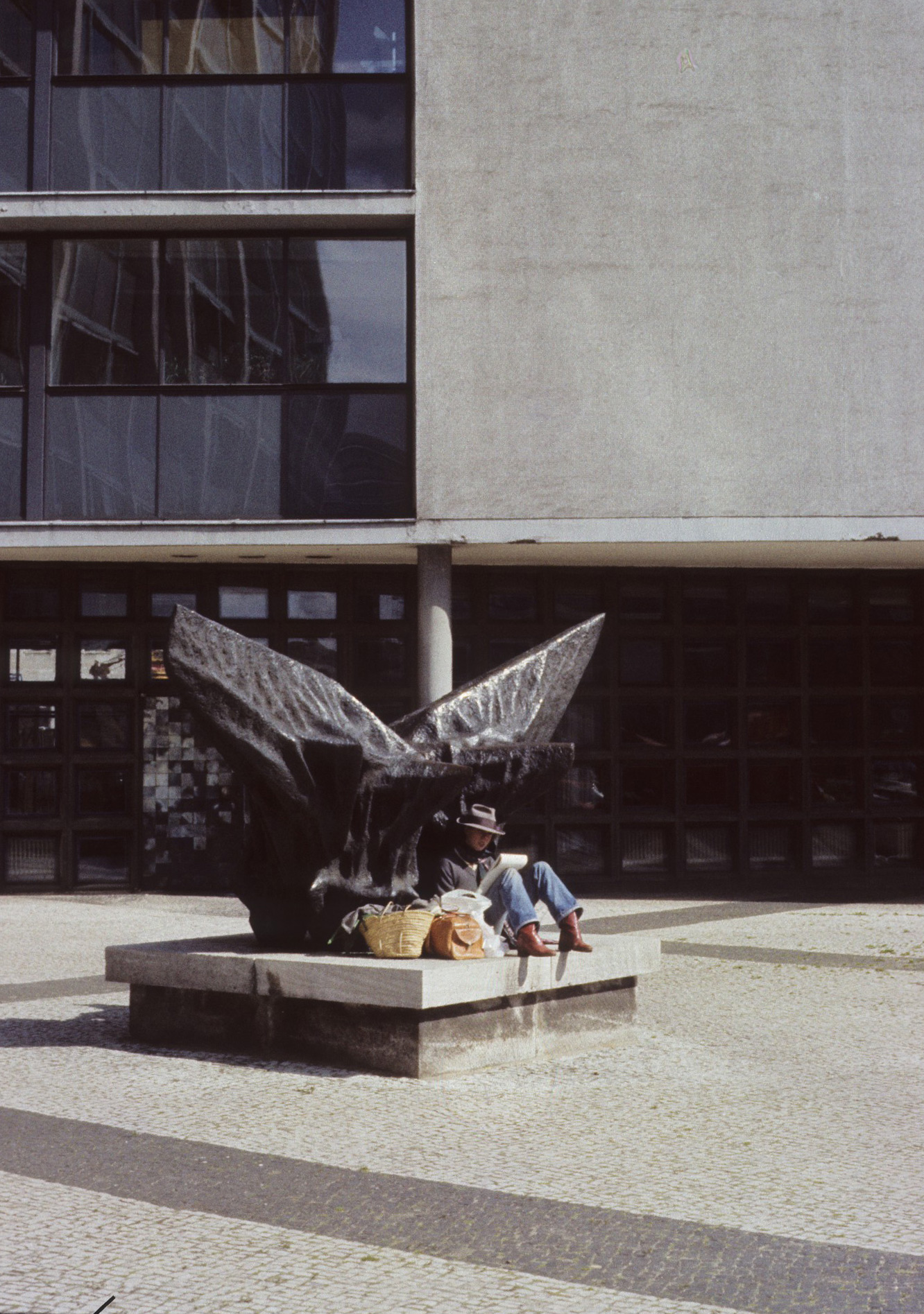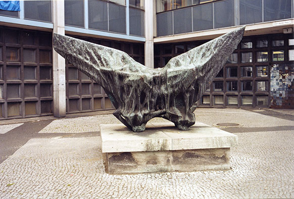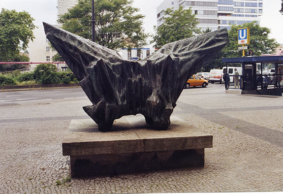 Die Plastik steht auf fünf kleinen Füßen auf einem niedrigen Sockel aus Naturstein. Der äußere Umriss (der Kontur) der abstrakten Form wird durch zwei ausladende Flügelspitzen bestimmt, aber auch an der Vorder- und Rückseite gibt es vorspringende Elemente mit Kanten und Ecken. Die gesamte Oberfläche ist mit Rillen und Mulden überzogen, so dass die Plastik an die sich langsam öffnenden Flügel eines Schmetterlings oder eines Hautflüglers erinnern (Susanne Kähler).