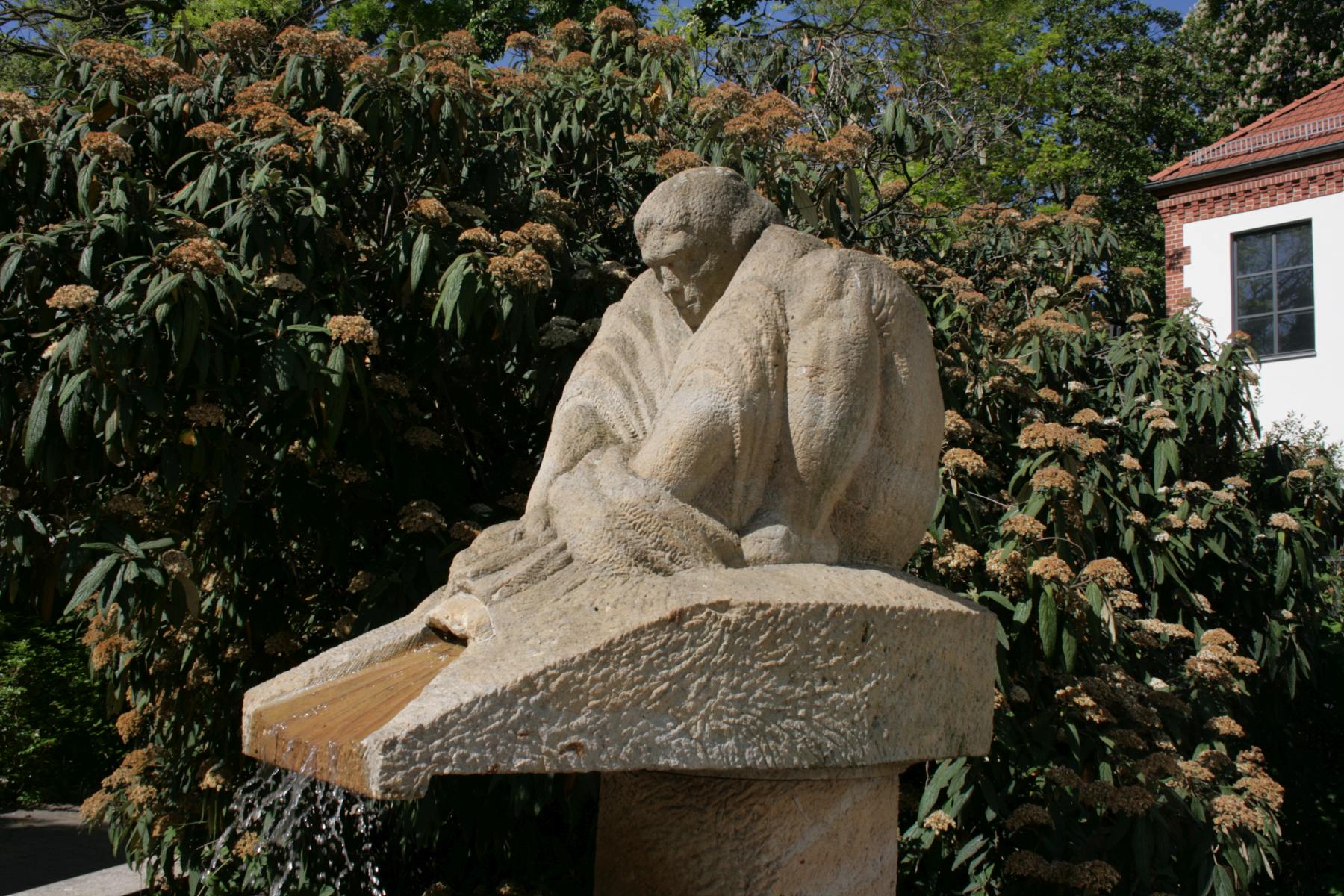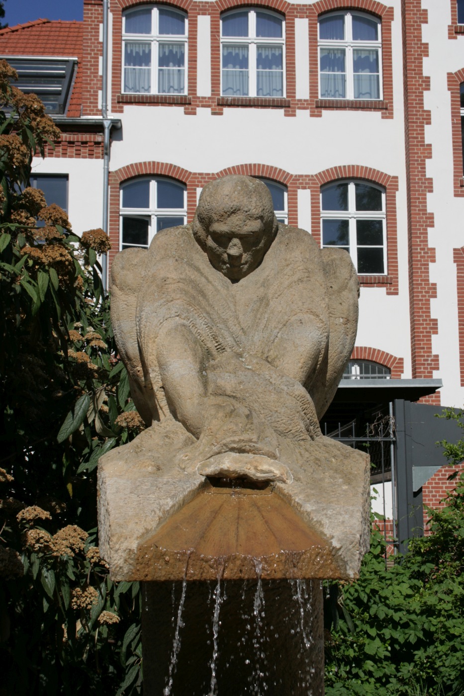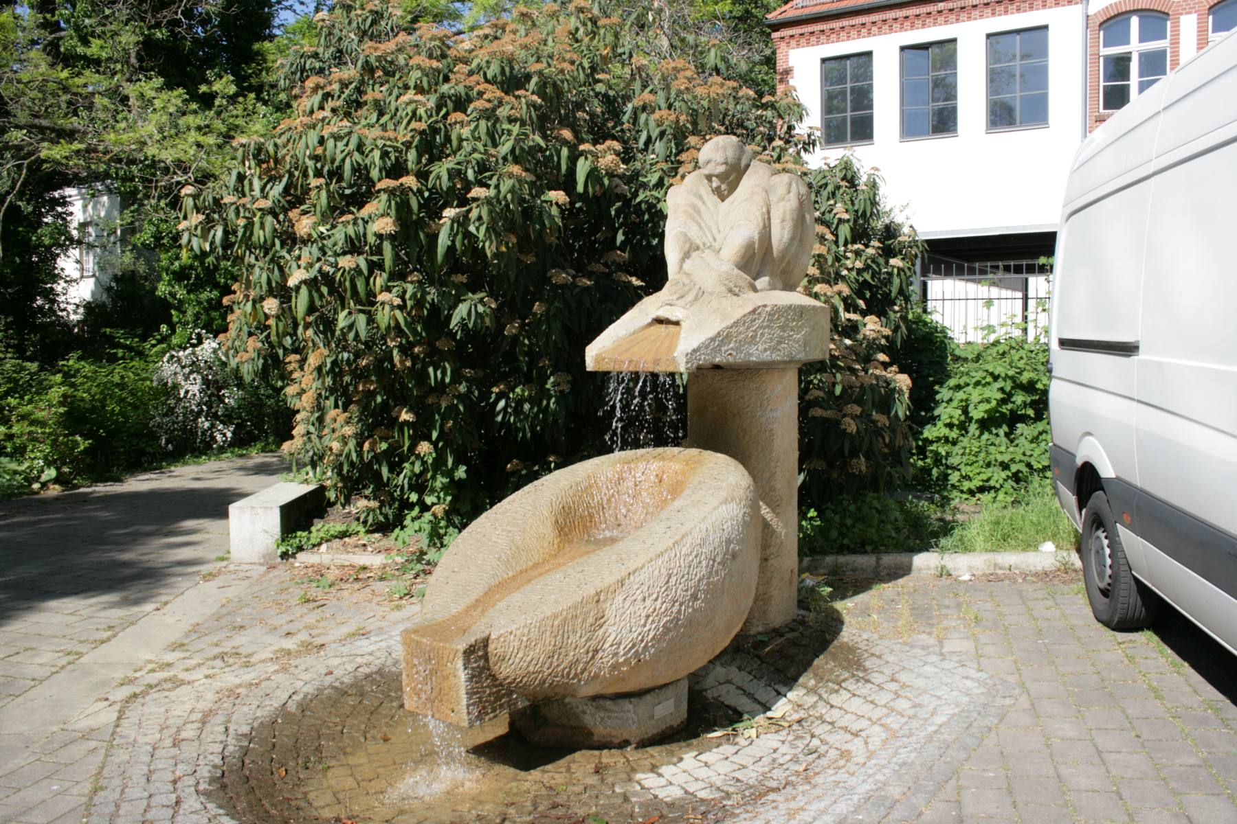 Genrehafte Brunnenplastik mit „Porträt“ der Köpenicker Wäscherin und Unternehmerin Henriette Lustig. Die Halbfigur sitzt einer Säule auf. Sie wringt Wäsche aus – das Motiv bedingt quasi die Brunnenfunktion, da das beim Wringen aus dem Waschgut hervorgepresste Wasser die gedankliche Vorgabe für den Wasserverlauf des Brunnens abgibt. Vor der Säule der schräg nach vorne abfallende, vaginaförmige Brunnentrog, in den das Wasser hineinläuft um weiter in eine Platzmulde zu plätschern. Der umgebende Platz ist gepflastert (Ilaria De Rosa, Jörg Kuhn).