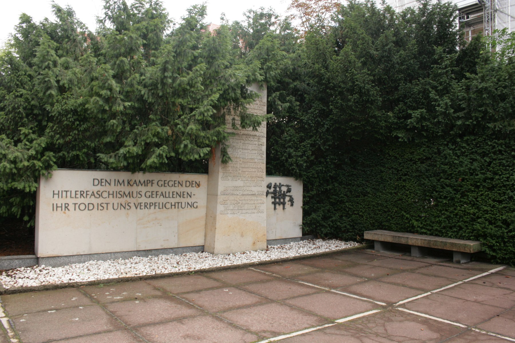 »DEN IM KAMPF GEGEN DEN / HITLERFASCHISMUS GEFALLENEN - / IHR TOD IST UNS VERPFLICHTUNG «