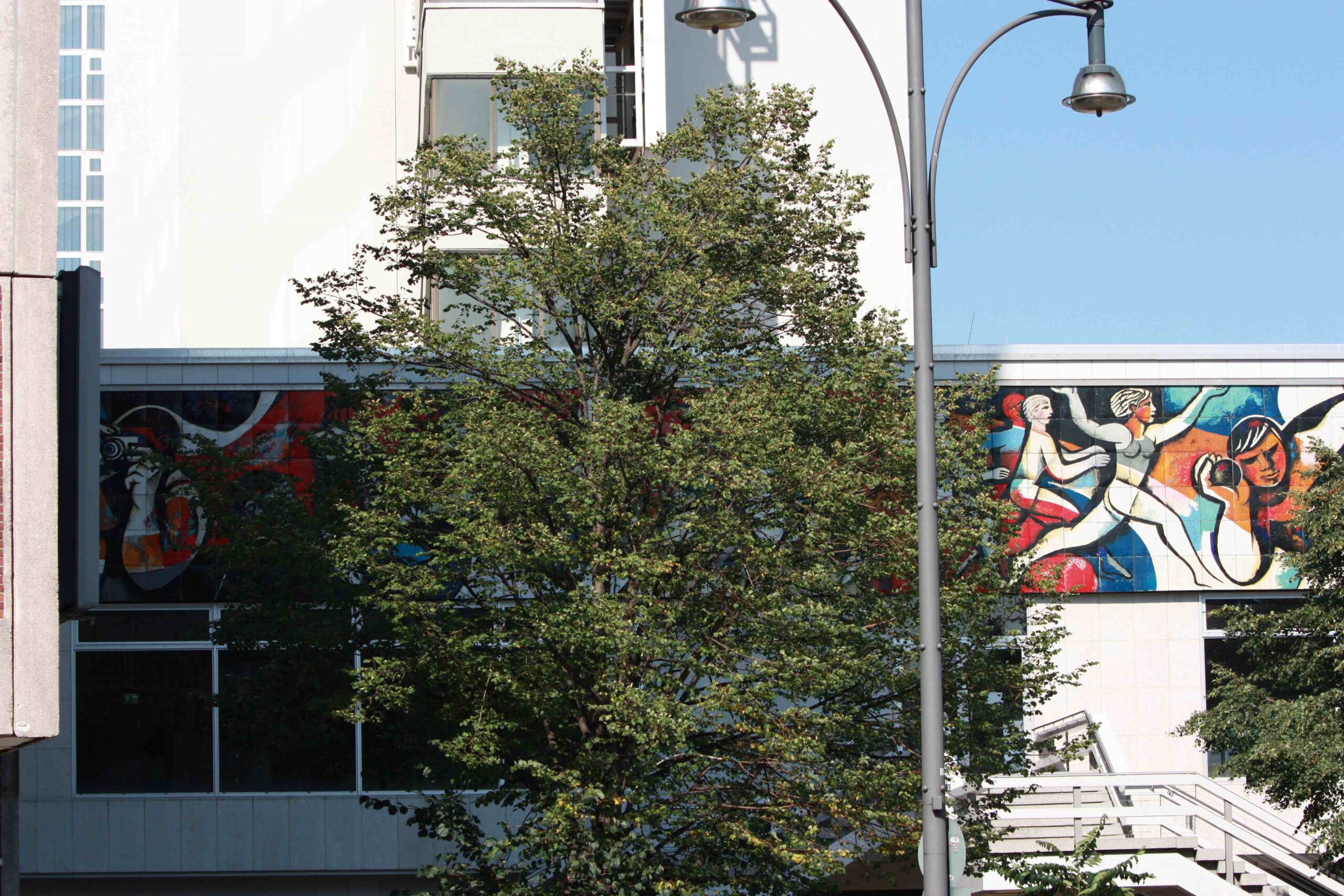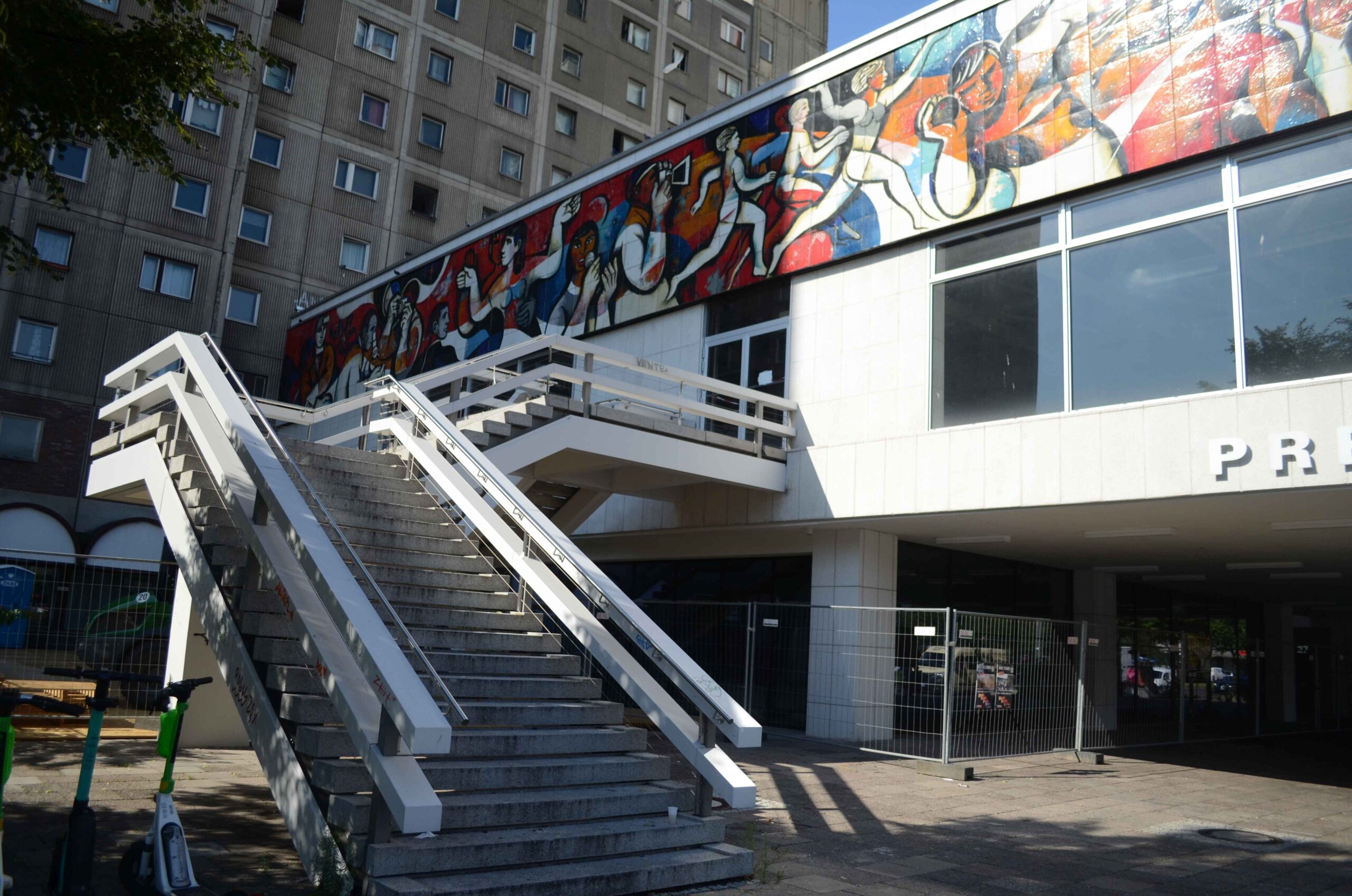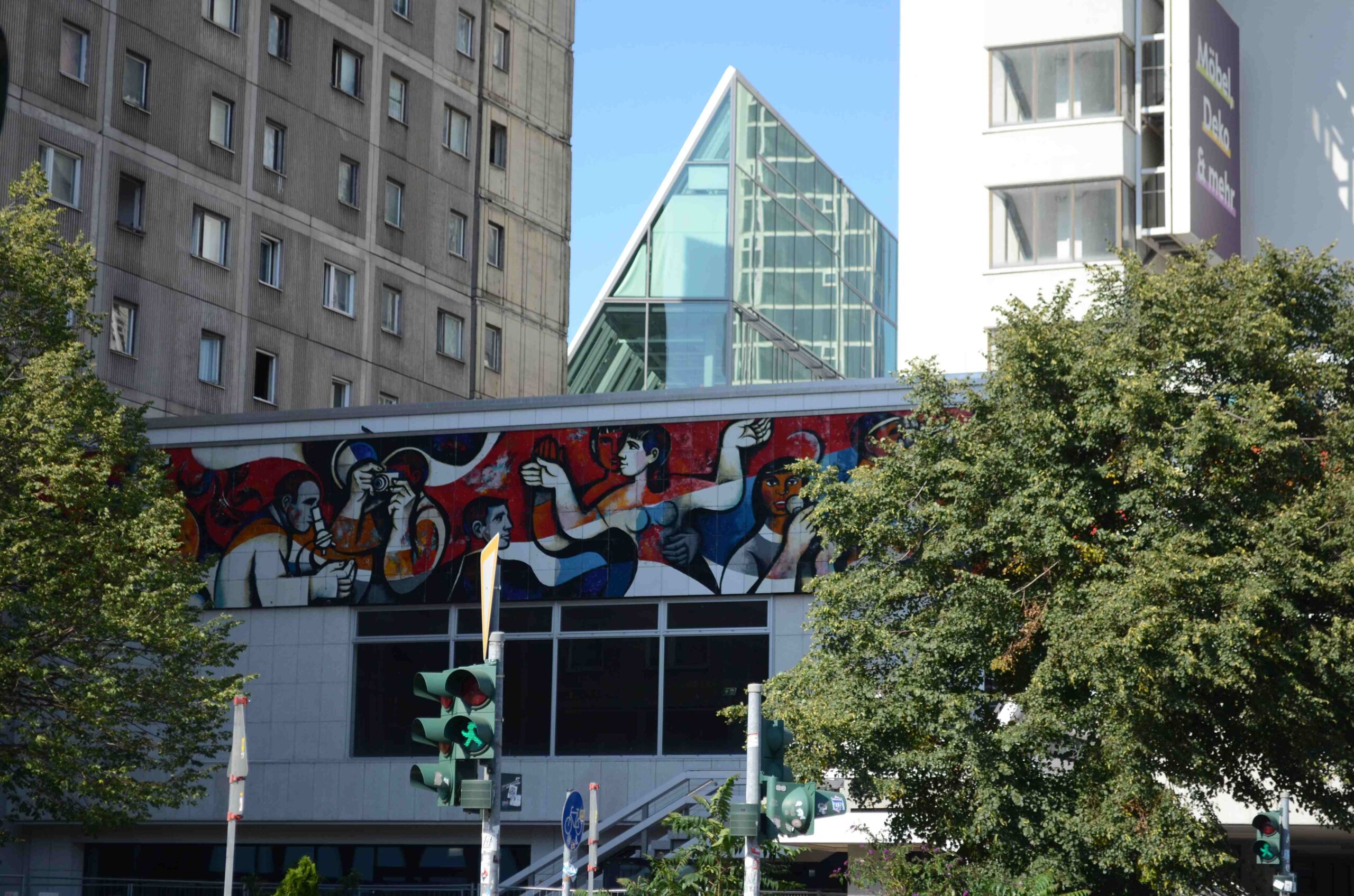 Das programmatische Fassadenfries mit dem Titel “Die Presse als Organisator” am Pressehaus am Alexanderplatz ist eine Kunst-am-Bau-Auftragsarbeit, die 1973 von Willi Neubert (1920 - 2011) umgesetzt wurde. Er steht im Kontext mit den Wandbildern am Haus des Lehrers und am Haus des Reisens. 29 Jahre lang wurde es von Werbereklamen des Pächters verdeckt. 2013 erstellte das Landesdenkmalamt ein Gutachten, woraufhin das Gebäude samt Wandfries 2015 unter Denkmalschutz gestellt wurde. 2021 wurden die Bau- und Sanierungsarbeiten unter dem neuen Eigentümer (Immobilienunternehmen Tishman Speyer) abgeschlossen und das Fries wieder freigelegt (vgl. Wenzel 2020: https://kultur-mitte.de/wenn-die-sichtbarmachung-zugleich-eine-ausloeschung-ist/). Der Flachbau des Pressecafés mit dem Emaille-Fries des Malers Willi Neubert wurde in der dritten Phase des seit 2017 andauernden Sanierungsprojekts wieder instandgesetzt (vgl.: https://www.baunetz.de/meldungen/Meldungen-Sanierung_und_Erweiterung_des_Berliner_Pressehauses_von_gmp_8263114.html).