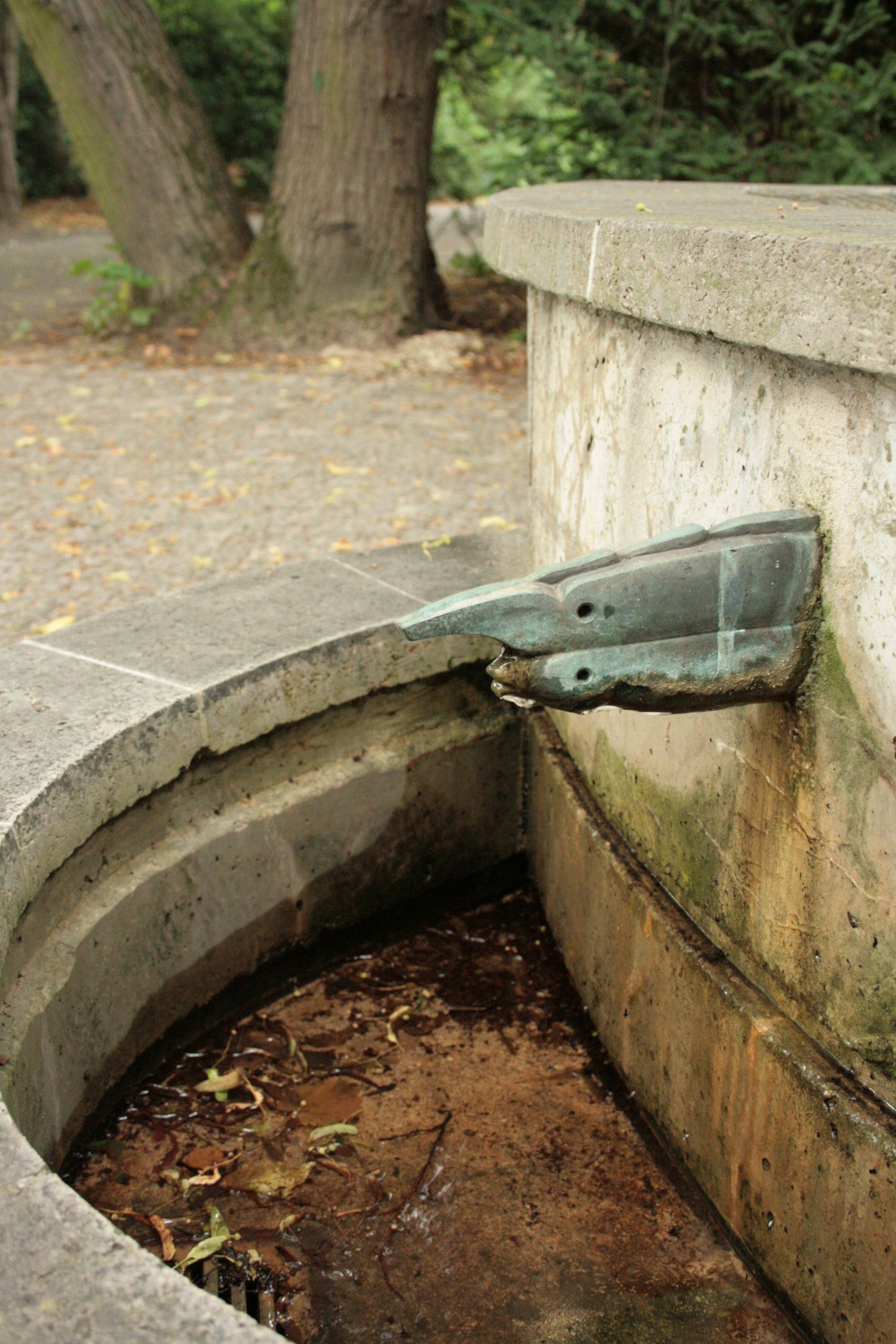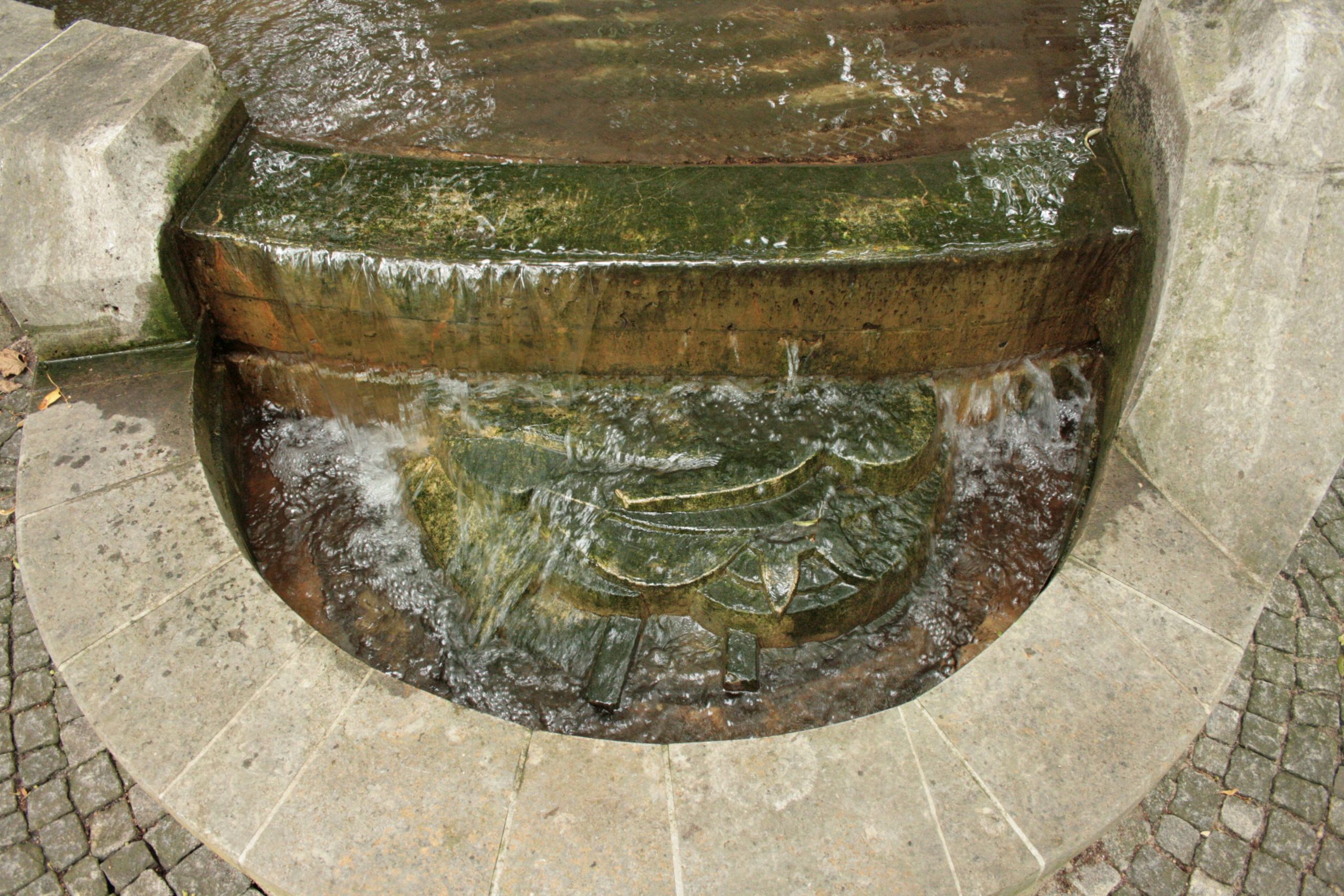 Der Brunnen ist ein Werk des Bildhauers Klaus-Michael Jopke. Eine fälschliche Zuschreibung an Günter Anlauf kann als widerlegt gelten. Kosten: 151.082,- DM. 1984 errichtet (Jörg Kuhn).