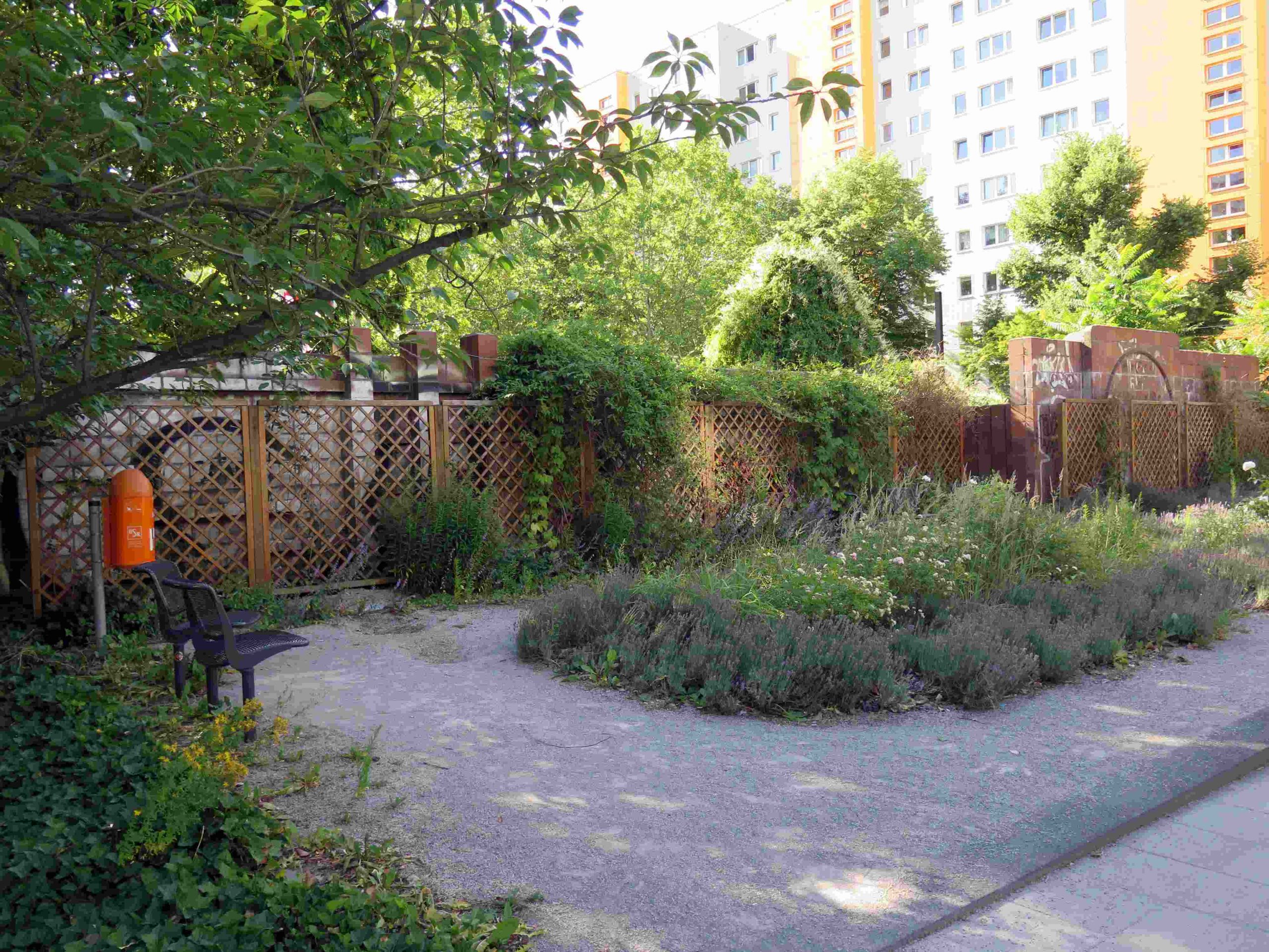 Ehemaliger Klinkerwand-Brunnen. Seitlich des Zugangs von der Karl-Lade-Straße zum Anton-Saefkow-Platz, gegenüber der Rudolf-Seiffert-Straße 17, stehen die Überreste einer Wasserwand aus Klinker. Im südlichen Bereich der Wand sind zahlreiche Keramikformsteine in waagerechten Reihen in die Wand eingefügt. Im nördlichen Bereich ist die Mauer durch waagerecht und senkrecht hervortretende Klinkerreihen gegliedert. Vor die gesamte Wand sind Rankgitter eingedübelt, die mit Kletterpflanzen bewachsen sind. Vor der Wand befindet sich ein großes Blumenbeet, an dessen Seiten Sitzbänke aufgestellt sind.
