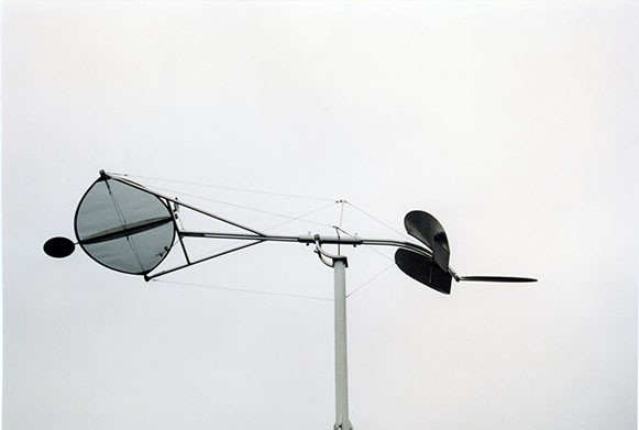 Das „kinetische Wind-Klang-Objekt“ besteht aus einem als Pfahl aufgestellten weiß lackierten und mit Stahlseilen befestigten Metallrohr und (ehemals aus) einem Windsack an dessen Spitze, der wohl im Zusammenspiel mit dem Rohr den Klang erzeugte. Heute ist der Windsack durch eine drehbar gelagerte Metallinstallation ersetzt, bestehend aus Metallstreben und Metallplatten, die die Funktion eines Heckruders übernehmen und verschieden drehbar gelagerten scheibenförmigen Elementen an der entgegengesetzten Seite. Dieser Aufsatz wirkt heute als Hauptelement des ansonsten in dieser Aufstellung recht unauffälligen Kunstwerks (Jörg Kuhn, Susanne Kähler).