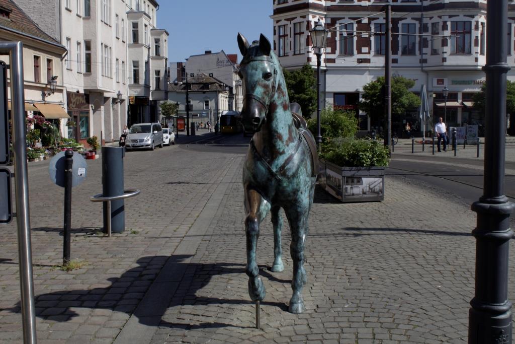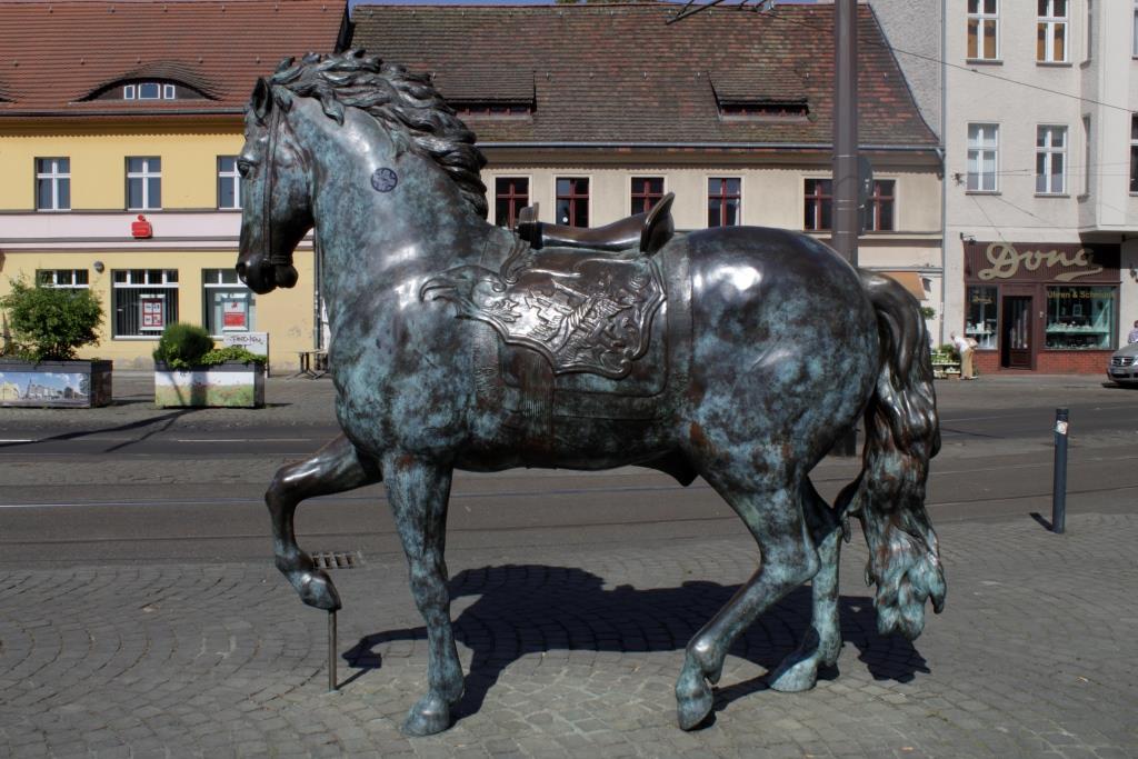 Aufstellung am 15.3.2008. Für die beiden Pferdeplastiken standen die Pferdefiguren des Reiterdenkmals des Großen Kurfürsten von Andreas Schlüter und des Reiterdenkmals für König Friedrich II. von Rauch "Pate". Die Objekte wurden in der Gießerei Seiler in Schöneiche bei Berlin gegossen. Die Aufstellung markierte den Abschluss der nachwendezeitlichen Ausschmückungsphase der Köpenicker Altstadt.