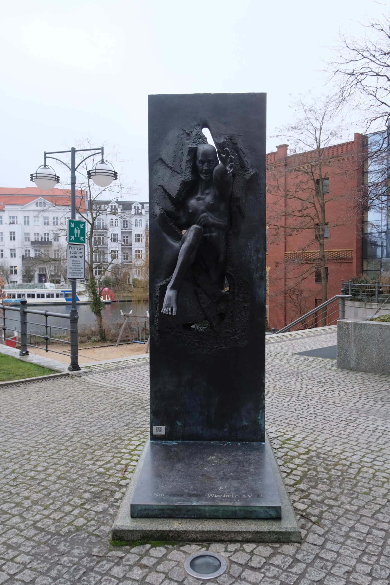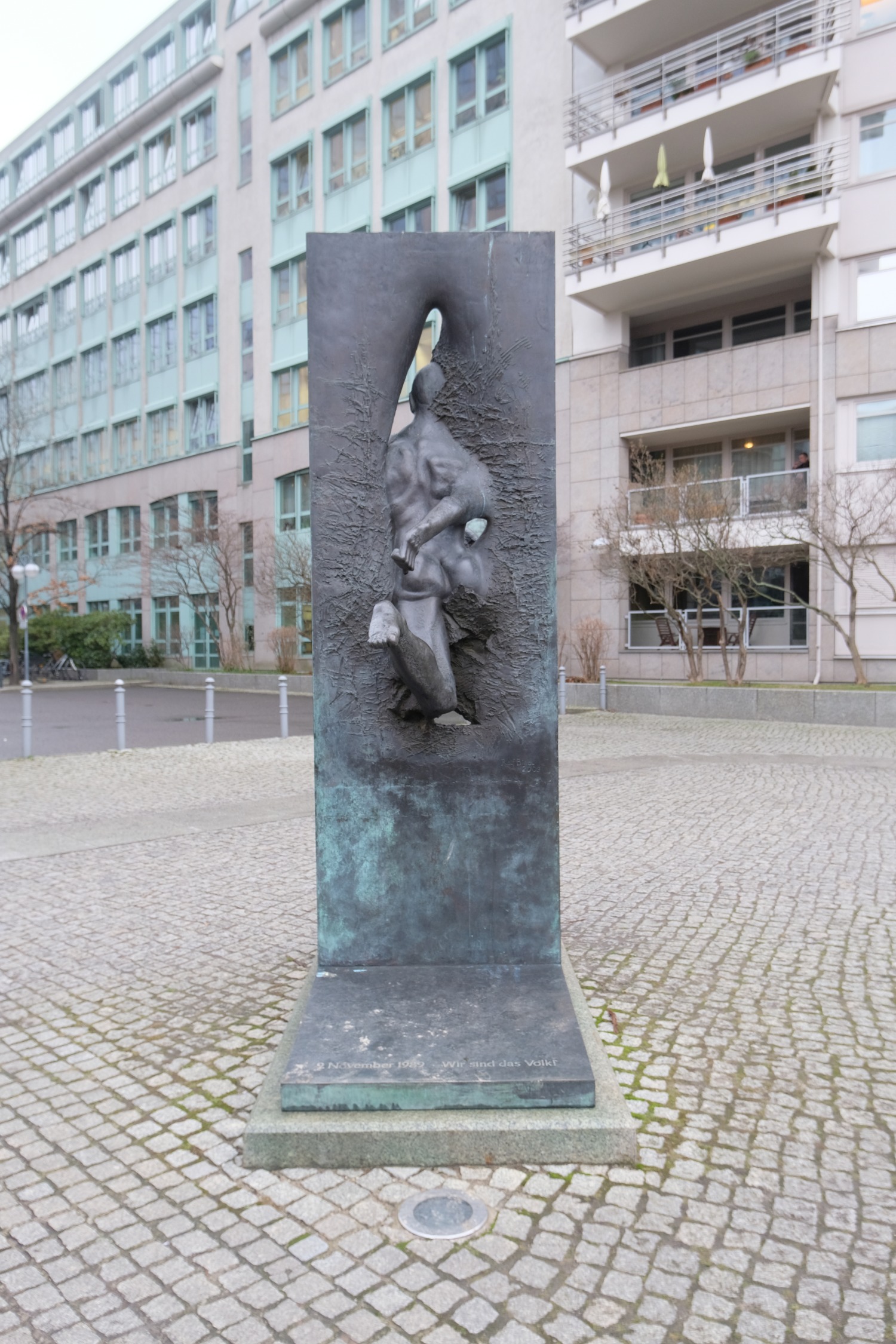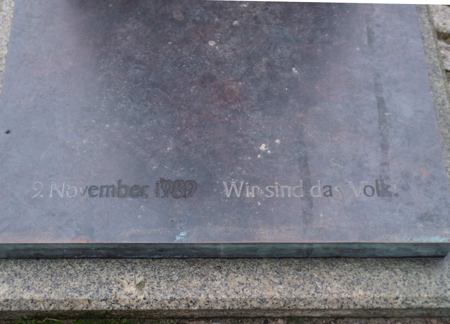 Zum 20. Jahrestages der friedlichen Revolution in der DDR hat die Ernst Freiberger-Stiftung die Plastik enthüllt. Die Idee zur Gestaltung kam Rolf Biebl spontan am 9. November 1989.