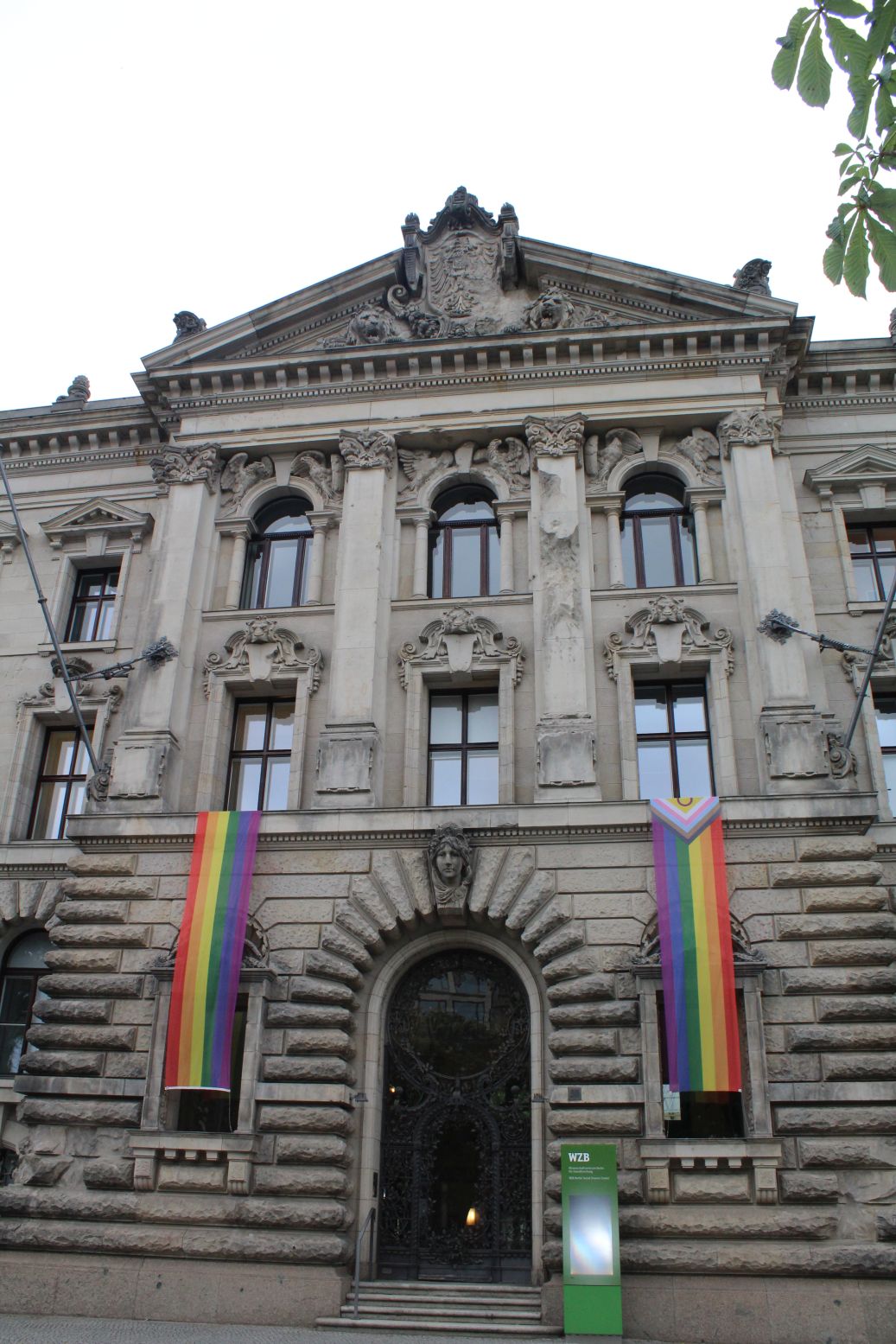 Das Gebäude des Reichsversicherungsamtes am Reichpietschufer (zur Bauzeit: Königin-Augusta-Str. 25-27, später: Tirpitzufer) wurde ab 1891 nach Plänen des Architekten August Busse errichtet und konnte am 01. Oktober 1894 eingeweiht werden. Die 1884 gegründete Behörde beaufsichtigte die Umsetzung der neu geschaffenen Sozialversicherungsgesetze (Gesetz betreffend der Krankenversicherung der Arbeiter 1883, Unfallversicherungsgesetz 1884/85, Invaliditäts- und Altersversicherung 1889/91 u.w.) im Deutschen Reich, die auf der Grundlage der in den 1880er Jahren erlassenen Arbeitsschutzgesetze geschaffen wurden. Nach dem 2. Weltkrieg waren hier eine Wehrmachtsbehörde, später das Städtische Konservatorium und die Zollfahndungsstelle untergebracht. Das Verwaltungsgebäude erstreckte sich ursprünglich über zwei hintereinander liegende Innenhöfe. Davon blieb nur der Haupttrakt am Landwehrkanal erhalten, die Hofgebäude wurden 1982 abgerissen. Hinter dem Vorderhaus errichteten die britischen Architekten James Stirling und Michael Wilford 1984-87 das Wissenschaftszentrum Berlin, ein bemerkenswertes Beispiel postmoderner Architektur. Das Vorderhaus des ehemaligen Reichsversicherungsamtes wird seit 1988 ebenfalls vom Wissenschaftszentrum genutzt. Die neuen Gebäude erinnern in ihrem Grundriss an eine Basilika, ein Amphitheater, eine Stoa und einem Turm. Die Fassade des Vorderhauses sollte erhalten bleiben und in den Zustand vor dem Krieg gebracht werden. So sollte ein Teil der Geschichte der Umgebung erhalten bleiben, während die Neubauten diese ergänzen sollen. Trotzdem wurden einige Elemente, wie die Ananas auf der Attika oder die Krone der Freiheitsstatute, zu der Fassade hinzugefügt, die diese durchbrechen sollen. Das prächtige schmiedeeiserne Gitter am Haupteingang stammt aus der Kunstschmiedewerkstatt Ed. Puls (Nicola Vösgen/ Rieke Fender).