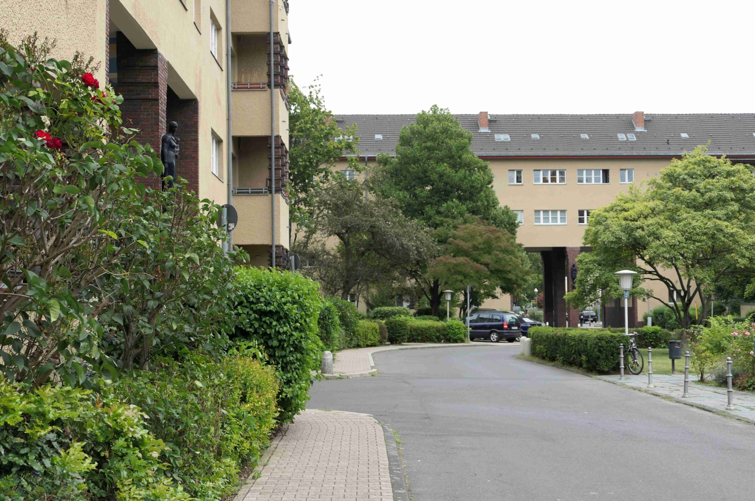 Die Wohnanlage besteht aus einer dreigeschossigen Blockrandbebauung und zwei innen liegenden hufeisenförmigen Wohnhöfen mit viergeschossigen Gebäuden.Das Zentrum bildet ein gärtnerisch gestalteter Innenhof, der sog. Bärenhof, der über Zufahrten von der Bacharacher und der Schaffhausener Straße erschlossen wird. Die beiden nördlich und südlich gelegenen Wohnhöfe, der Oberland- und der Germaniagarten, sind über große Durchfahrten mit dem mittleren Hof verbunden (Nicola Vösgen).