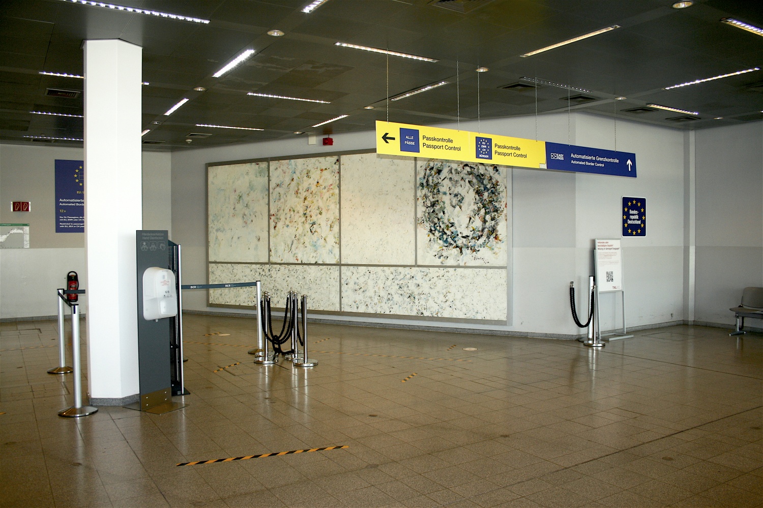 1982/83 Hängung auf der Empore der sog. Nebelhalle, 2019 Hängung in Terminal E