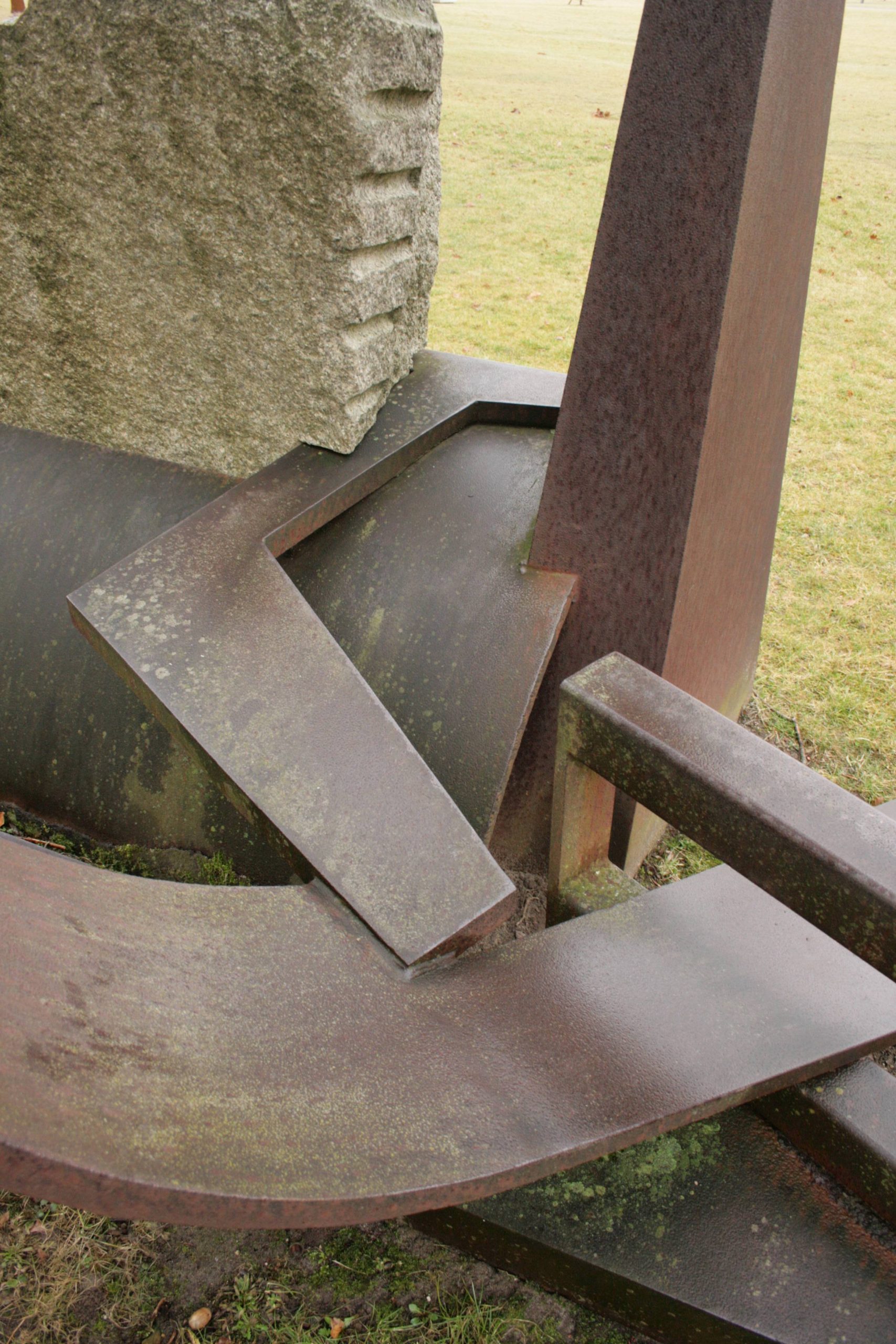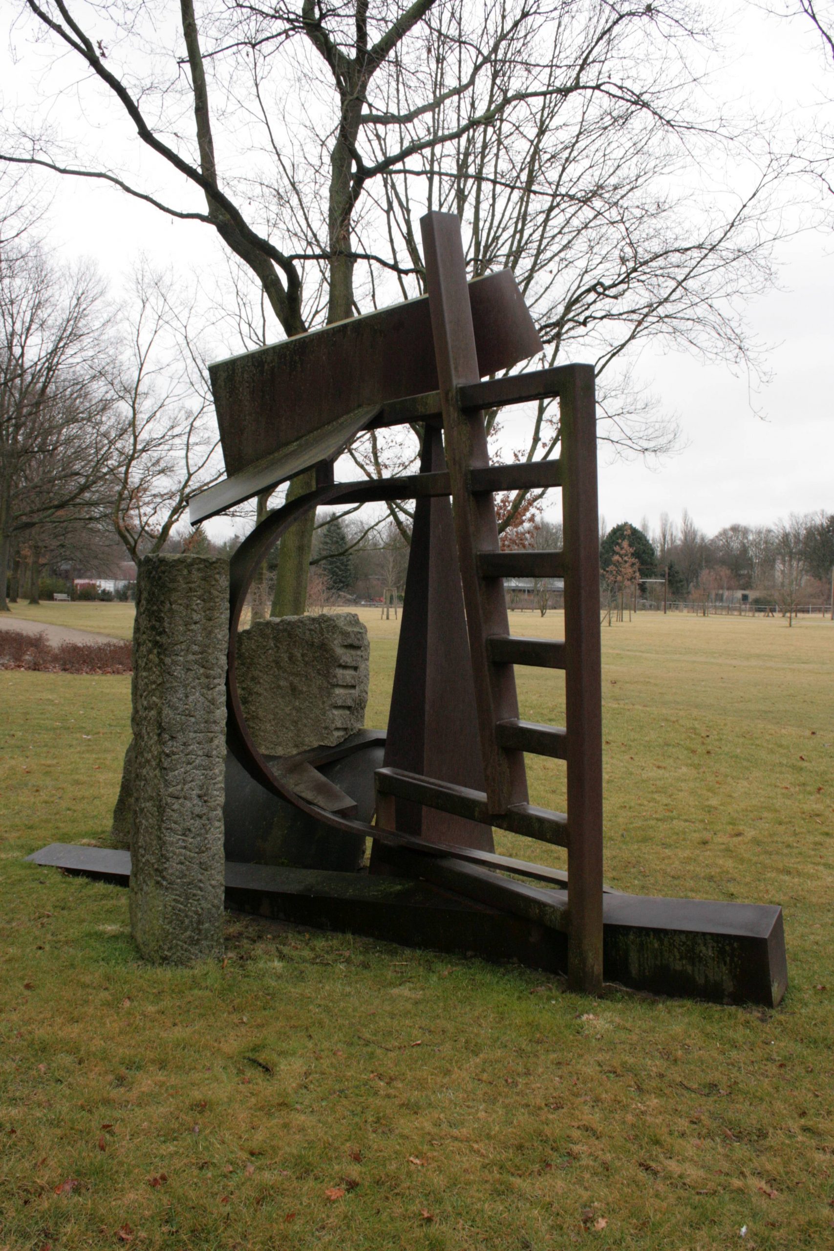 Entstanden anlässlich der Buga 1985. Die Gruppe ODIOUS wurde 1982 von Klaus H. Hartmann, Gisela von Bruchhausen, Klaus Duschat, Hartmut Stielow, David Lee Thompson und Gustav Reinhardt gegründet. Mit dem im Berliner Gemeinschaftsatelier entstandenen Gemeinschaftswerk "Zeit-Wege-Zeit" beteiligten sie sich 1984 an dem Wettbewerb zur künstlerischen Ausstattung der Bundesgartenschau 1985 in Berlin-Neukölln.