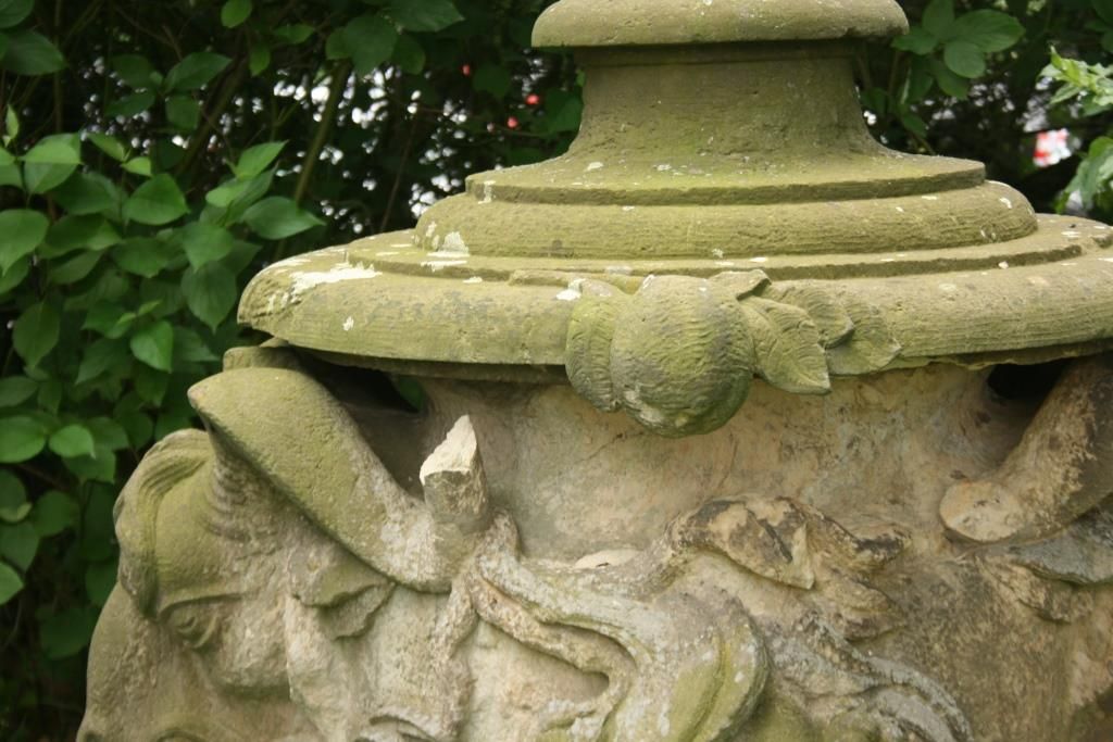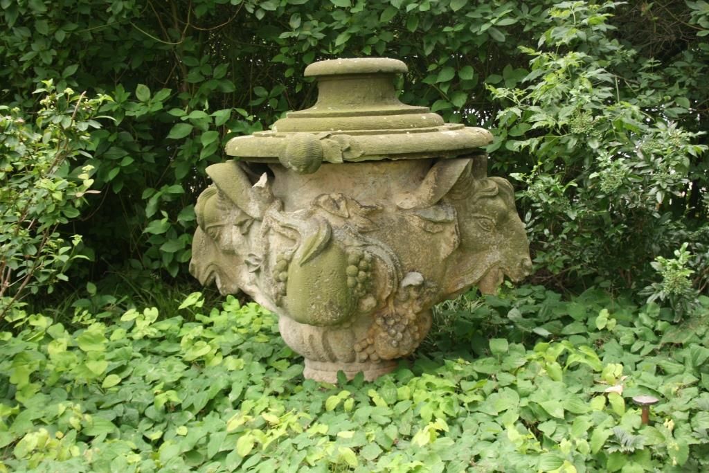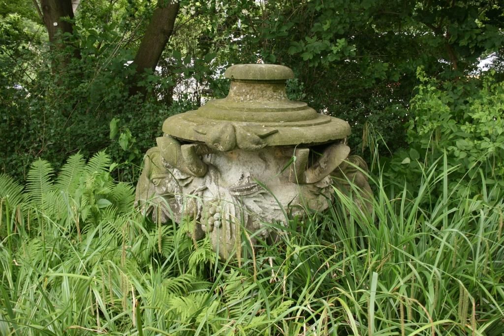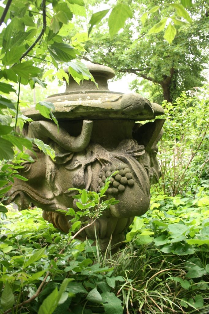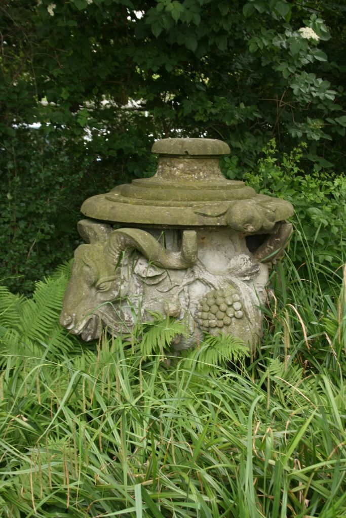 Nach spätbarocken Vorbildern geschaffen. Seit 1956 im Tierpark. Eine weitere Vase dieses Typs befindet sich im Köllnischen Park am Märkischen Museum in Mitte. Diese Vase im Köllnischen Park wurde 1971 - vermutlich aus museumsdidaktischen Gründen - geschaffen und zwar nach konkreten Vorbildern auf den Kolonnaden von Schloss Sanssouci, Werken von Friedrich Christian Glume nach Entwurf von Knobelsdorff aus der Zeit um 1745/1747. Enrico Matthies weist in eine verwandte Richtung: Bei den Bocksvasen "könnte (man) hier von einem 'Abglanz' vom Wiederaufbau der deutschen Staatsoper Unter den Linden sprechen, denn viele Kopien sind mehrfach entstanden und fanden oft andere Verwendungen. Es sei hier nochmals unterstrichen, nicht alles ist Erstguß bzw. Original, was den Anschein erweckt" (Enrico Matthies, 2009, S. 70).