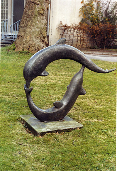 Trotz Glättung und Stilisierung sehr naturnahe Darstellung der beiden miteinander spielenden, in etwa kreisförmig angeordneten Tiere.