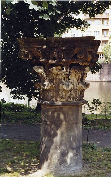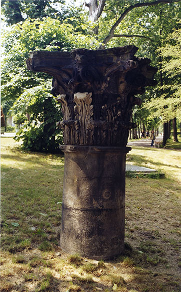 Im Spreeboskett, nordwestlich des Schinkelpavillons, sind zwei Säulenkapitelle aus Marmor auf Säulentrommeln aus Sandstein aufgestellt.